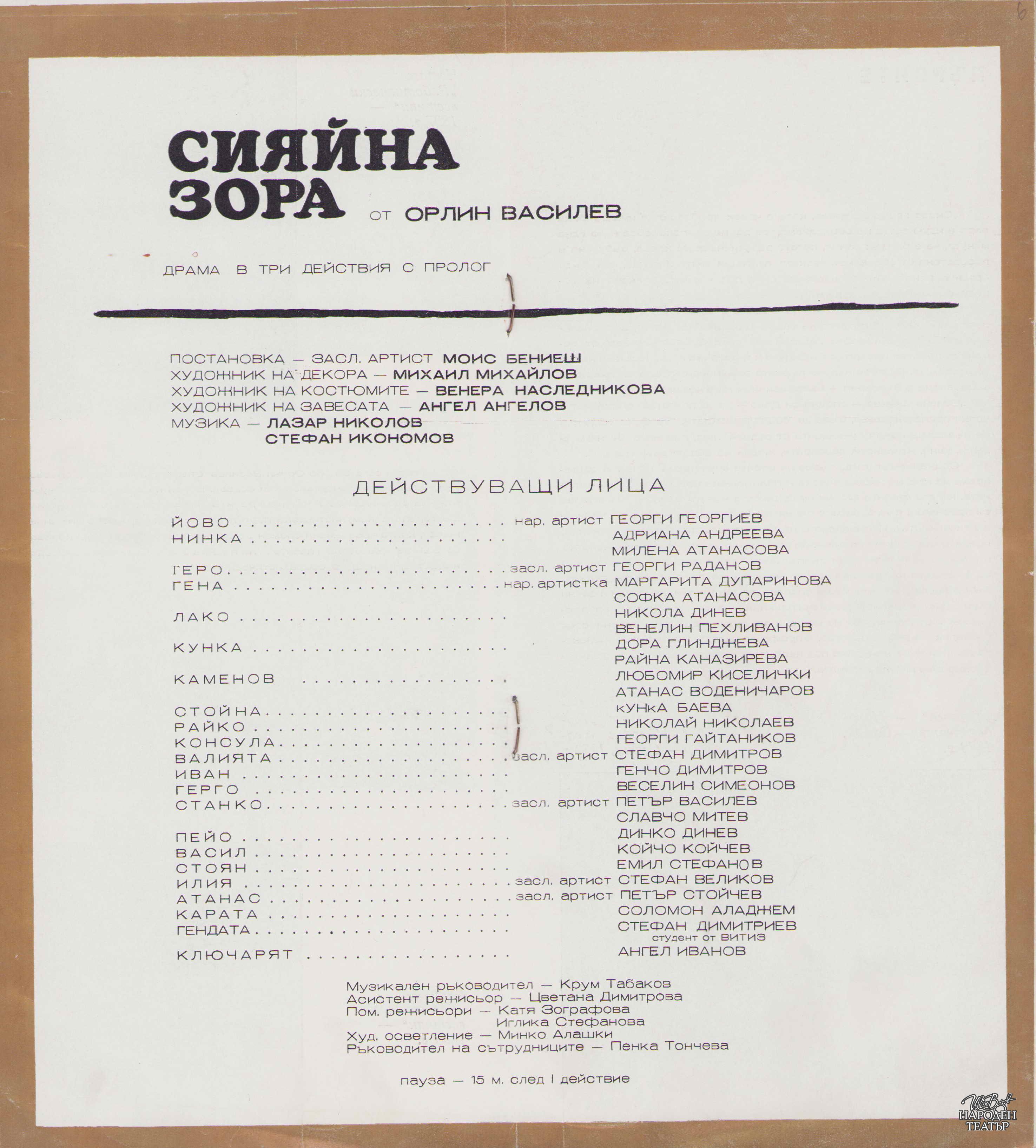 | Институция | Народен театър „Иван Вазов“, гр. София, България |