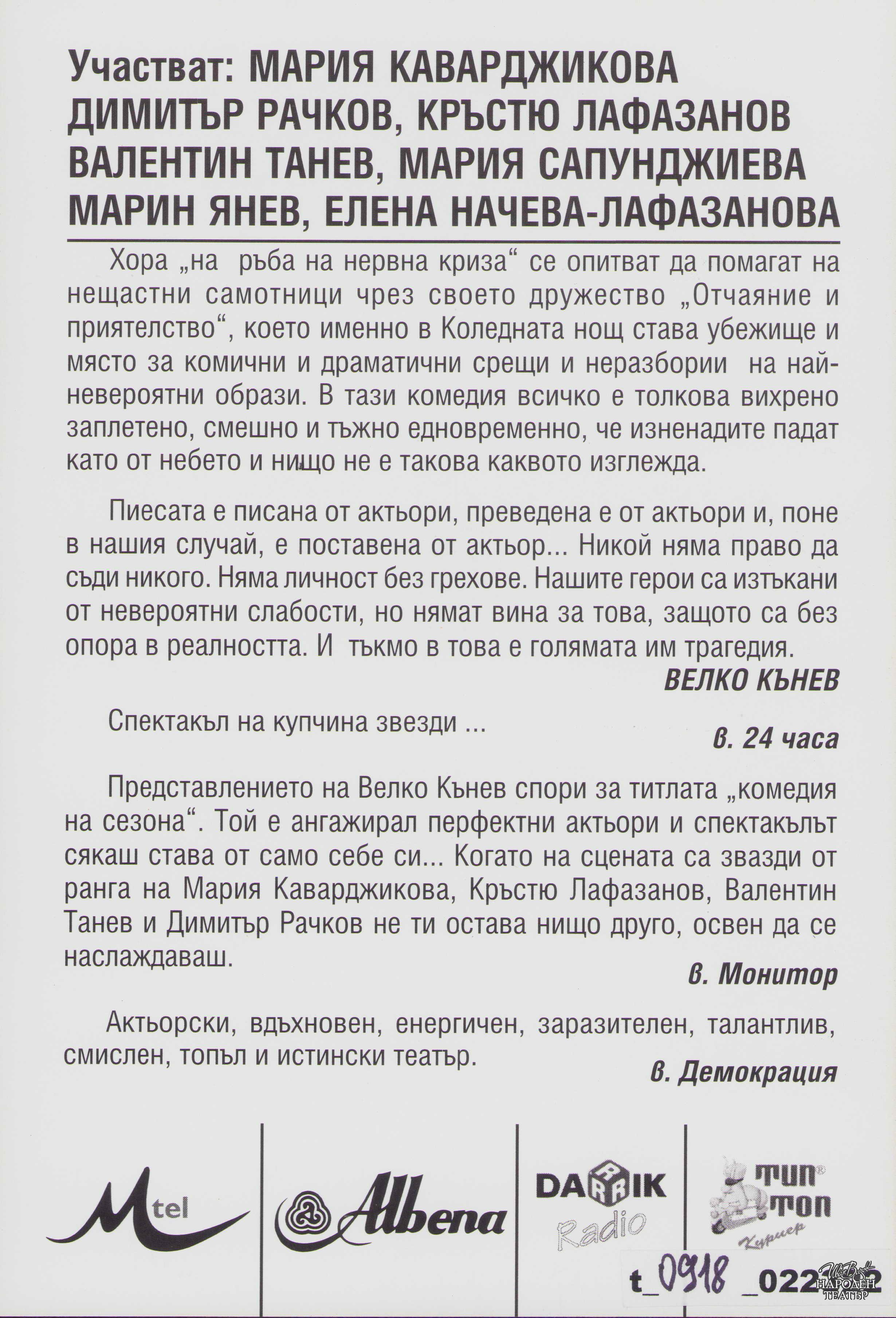 | Институция | Народен театър „Иван Вазов“, гр. София, България |