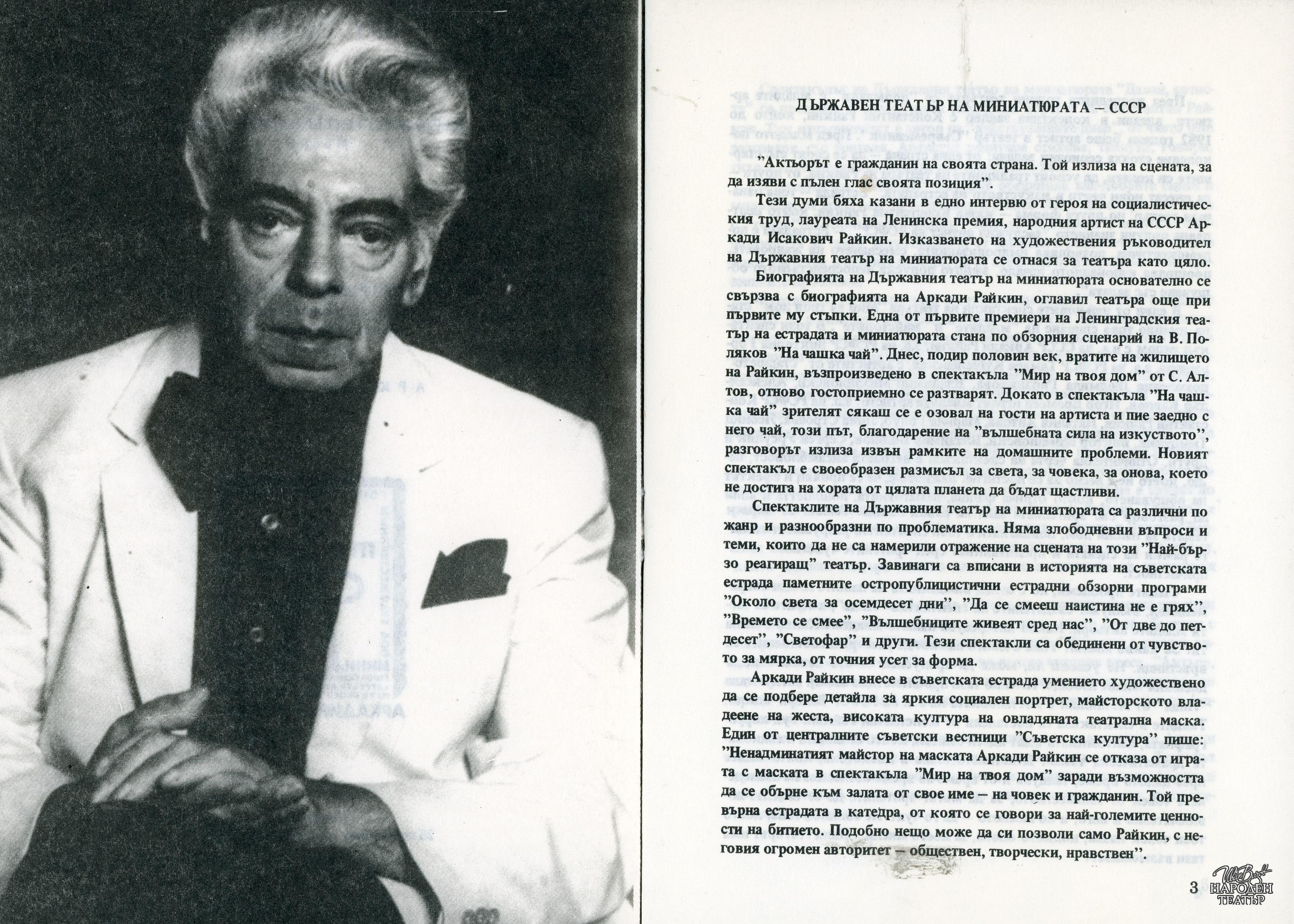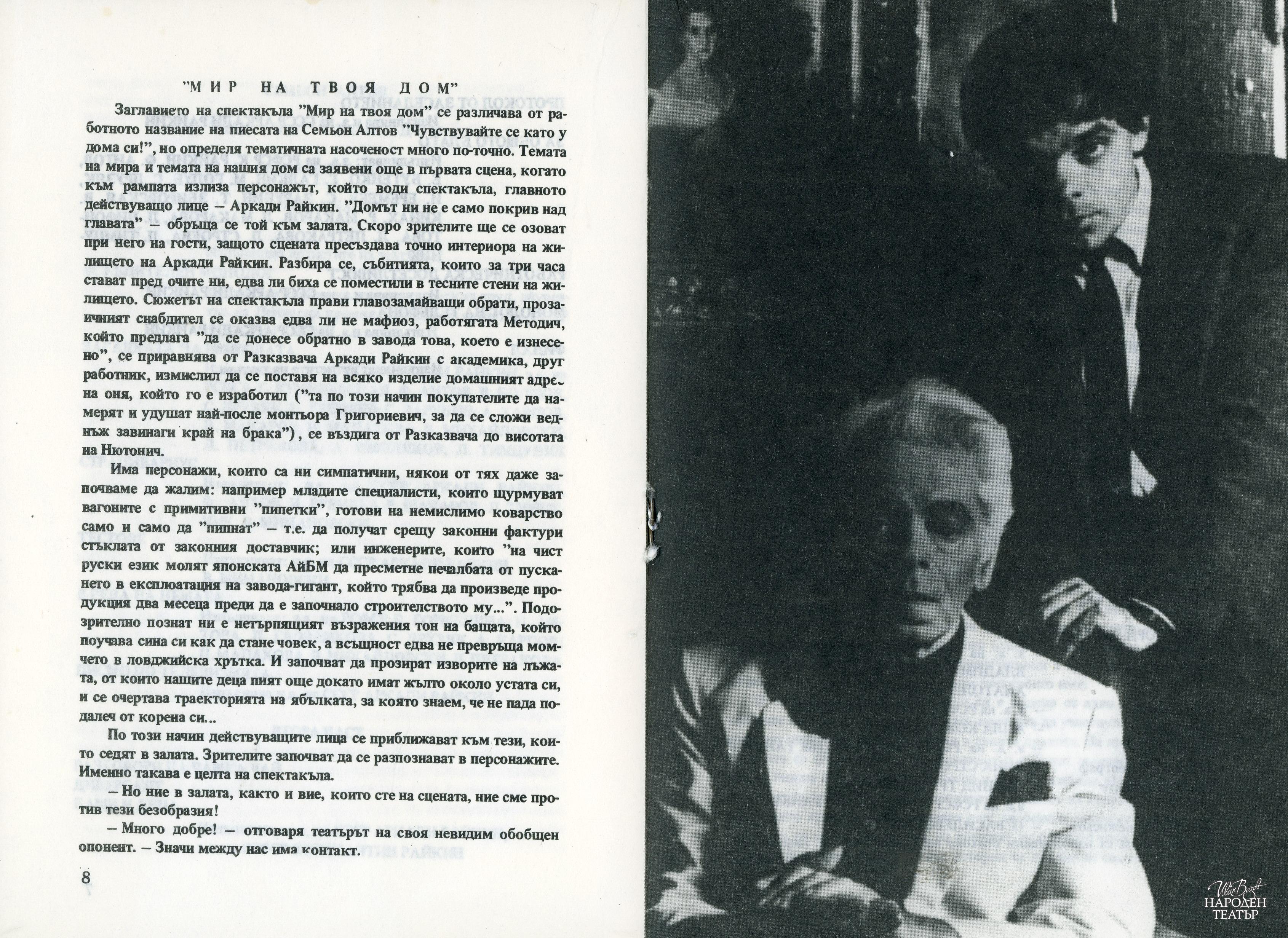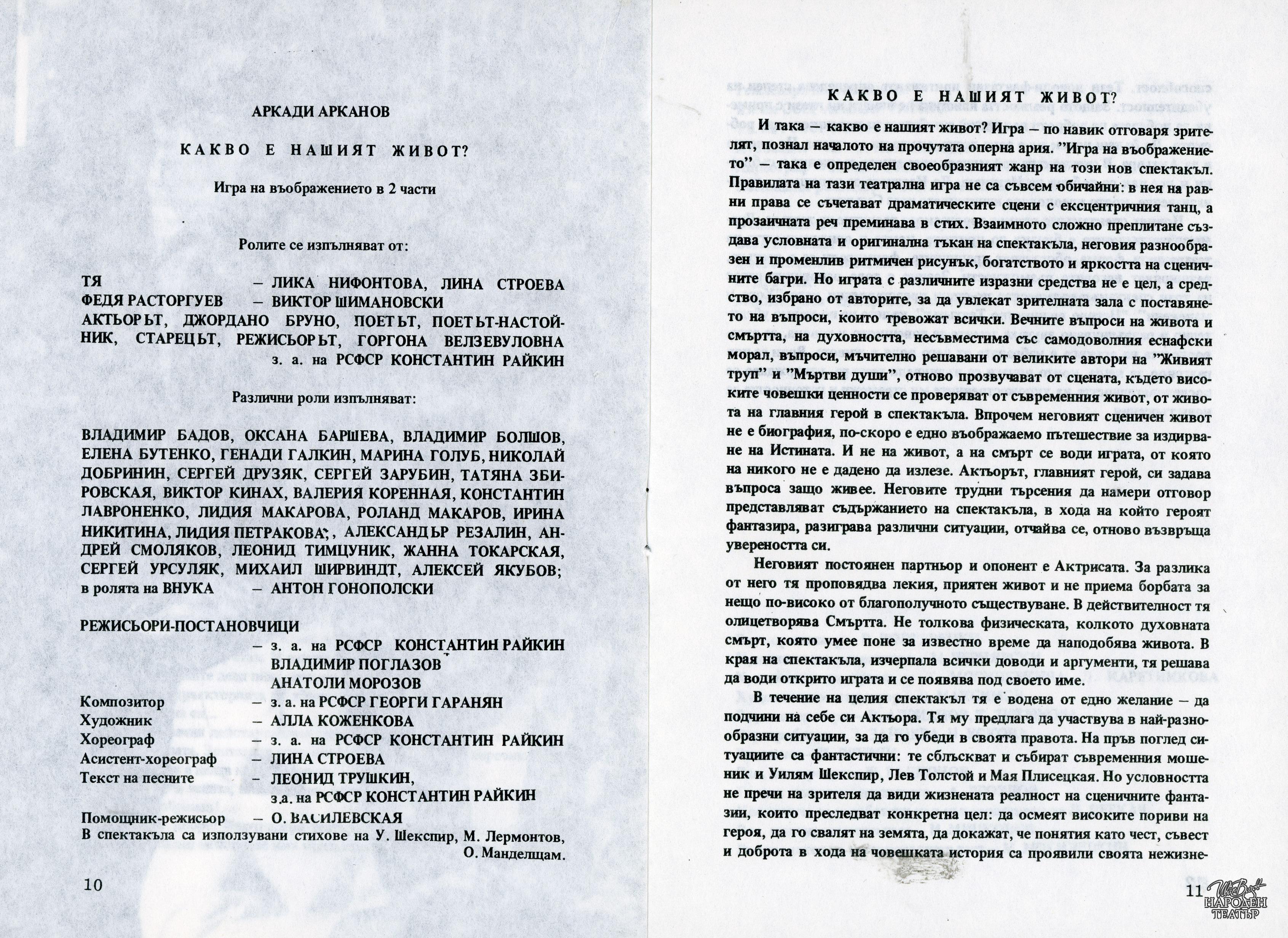 Програма за гостуването със спектаклите "Мир на твоя дом", "Какво е нашият живот?", "Диверсант" в периода 26.09 - 06.10.1986 г. |