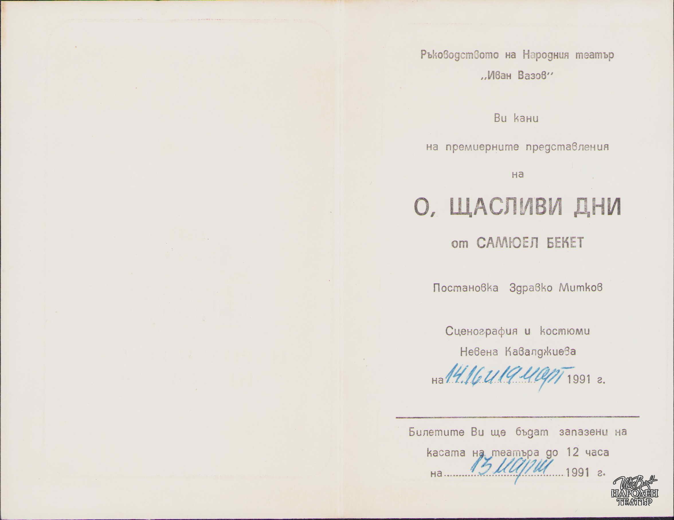 | Институция | Народен театър „Иван Вазов“, гр. София, България |