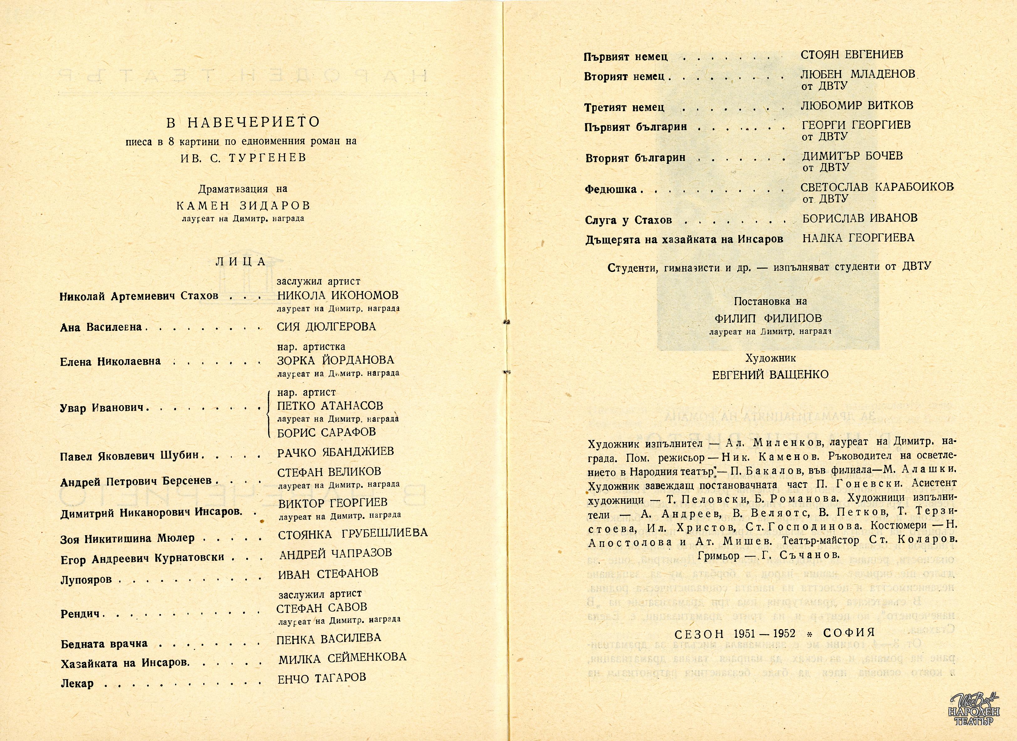 | Институция | Народен театър „Иван Вазов“, гр. София, България |