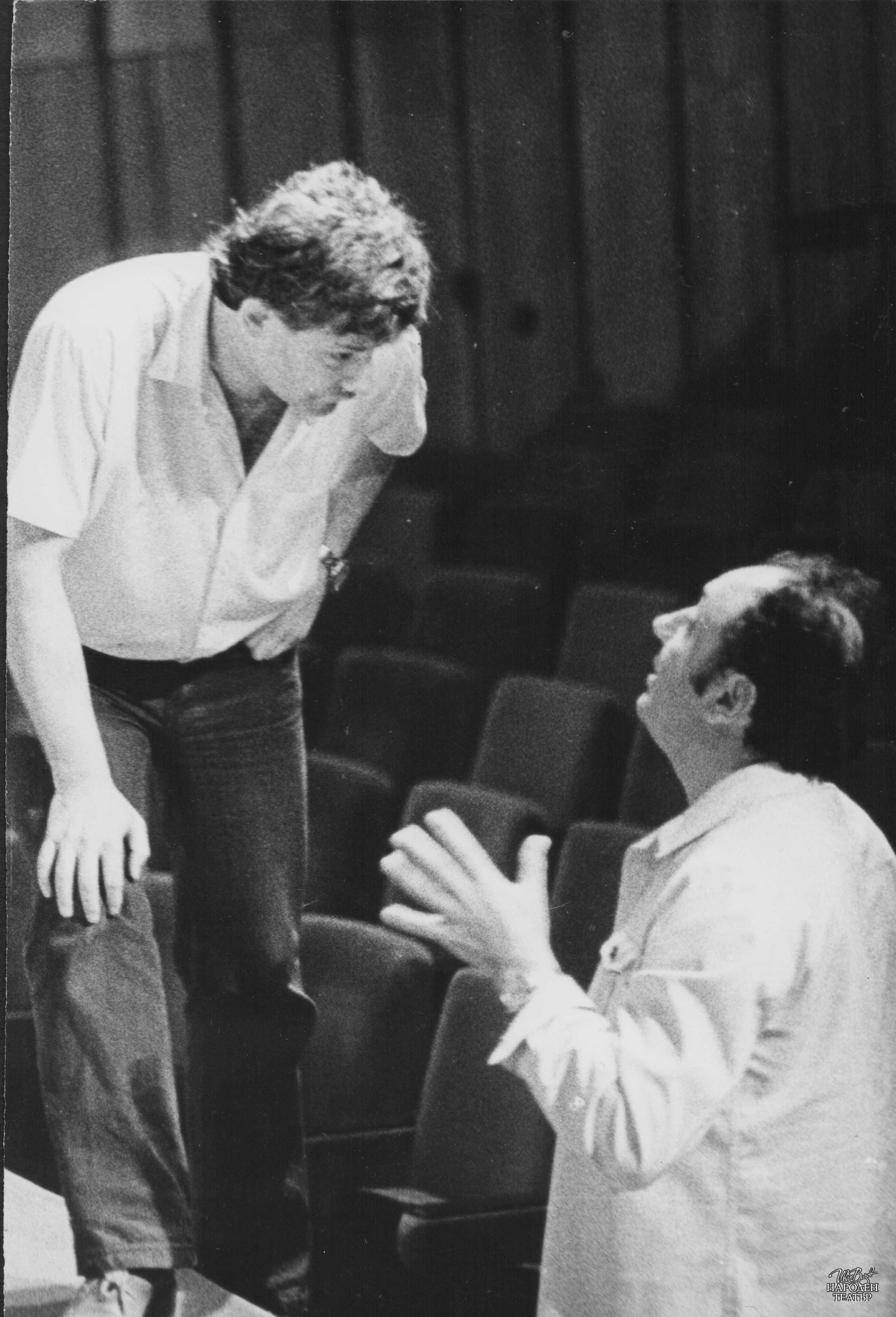 Със Стефан Стойчев, директор и режисьор, по време на репетиция на "Големанов" от Ст. Л. Костов в Силистра, 27 август 1982 г. |
