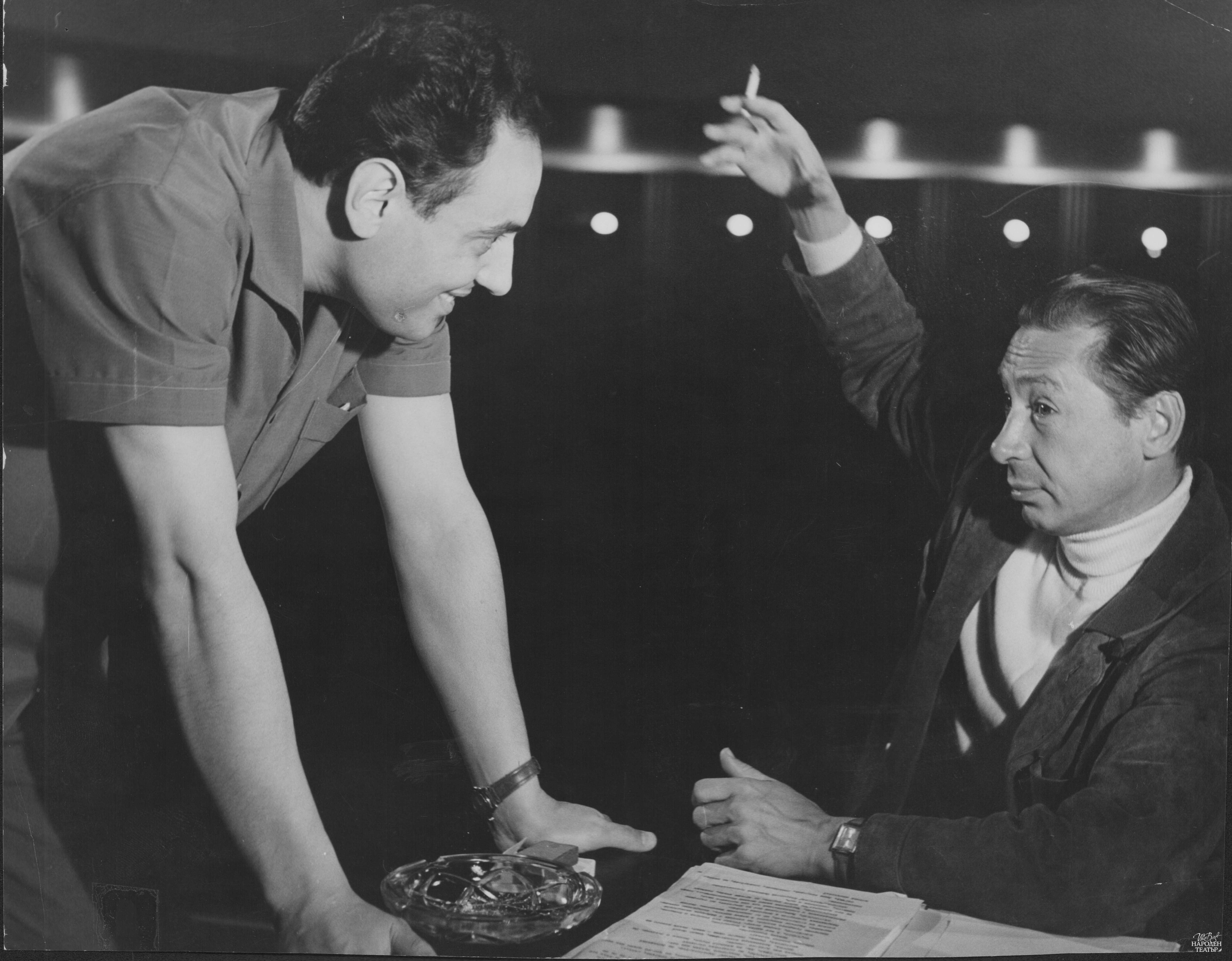 | Забележка: | С Олег Ефремов на репетиция на "Болшевики" от М. Шатров в Театър "Сълза и смях", октомври 1968 г. |