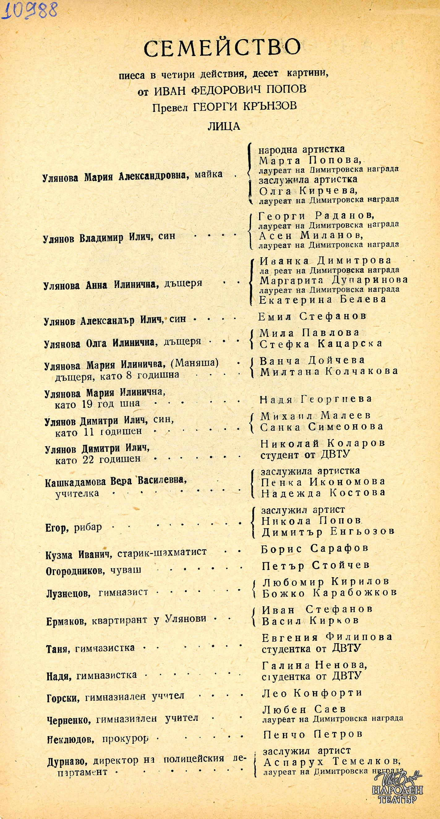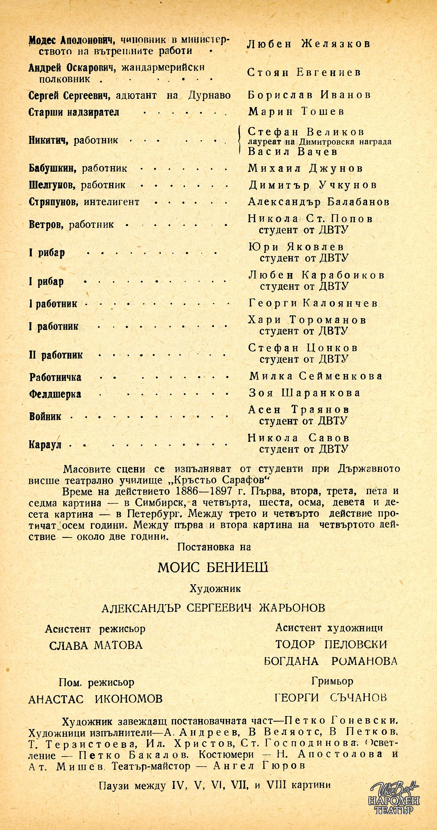 | Институция | Народен театър „Иван Вазов“, гр. София, България |