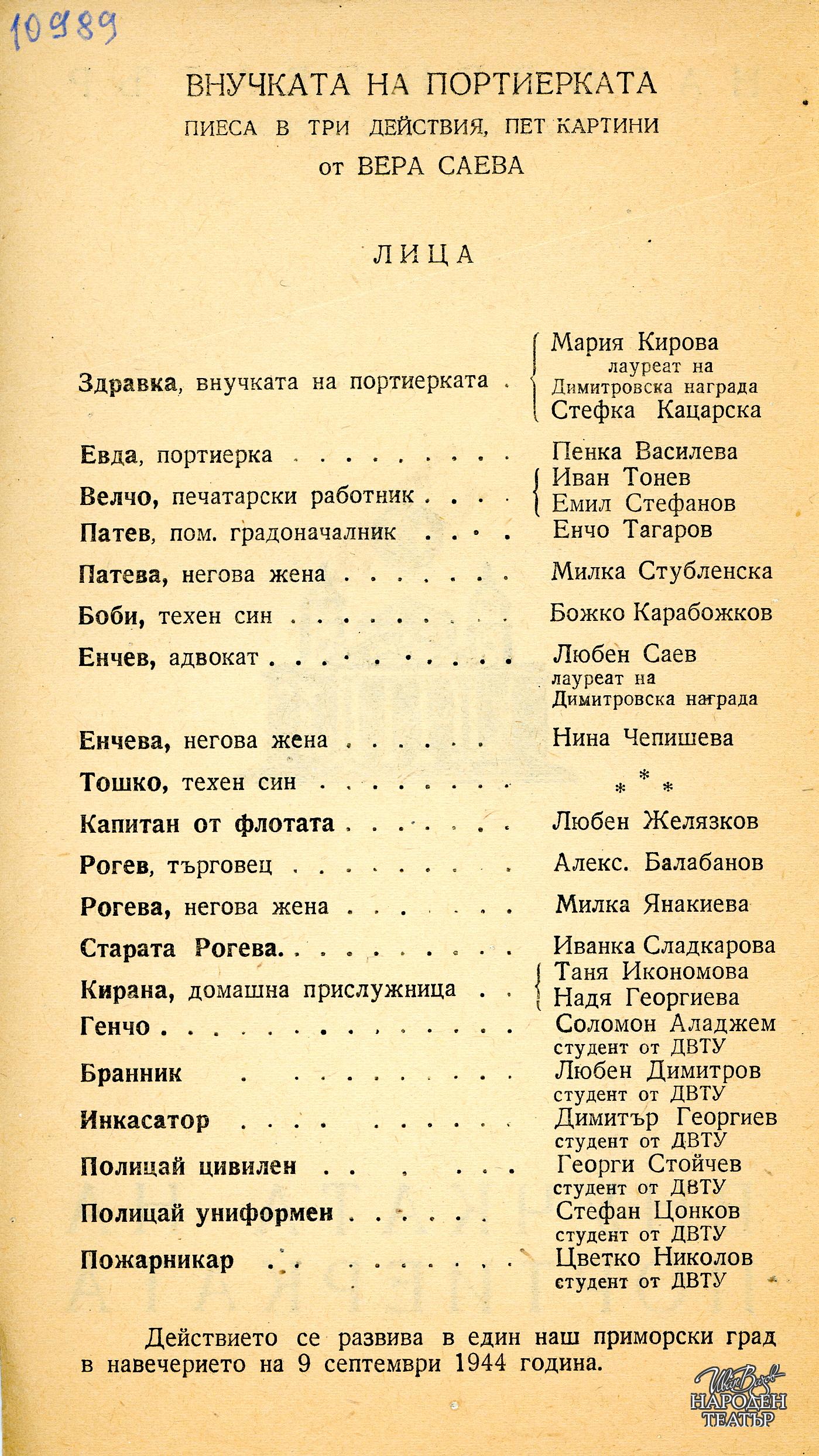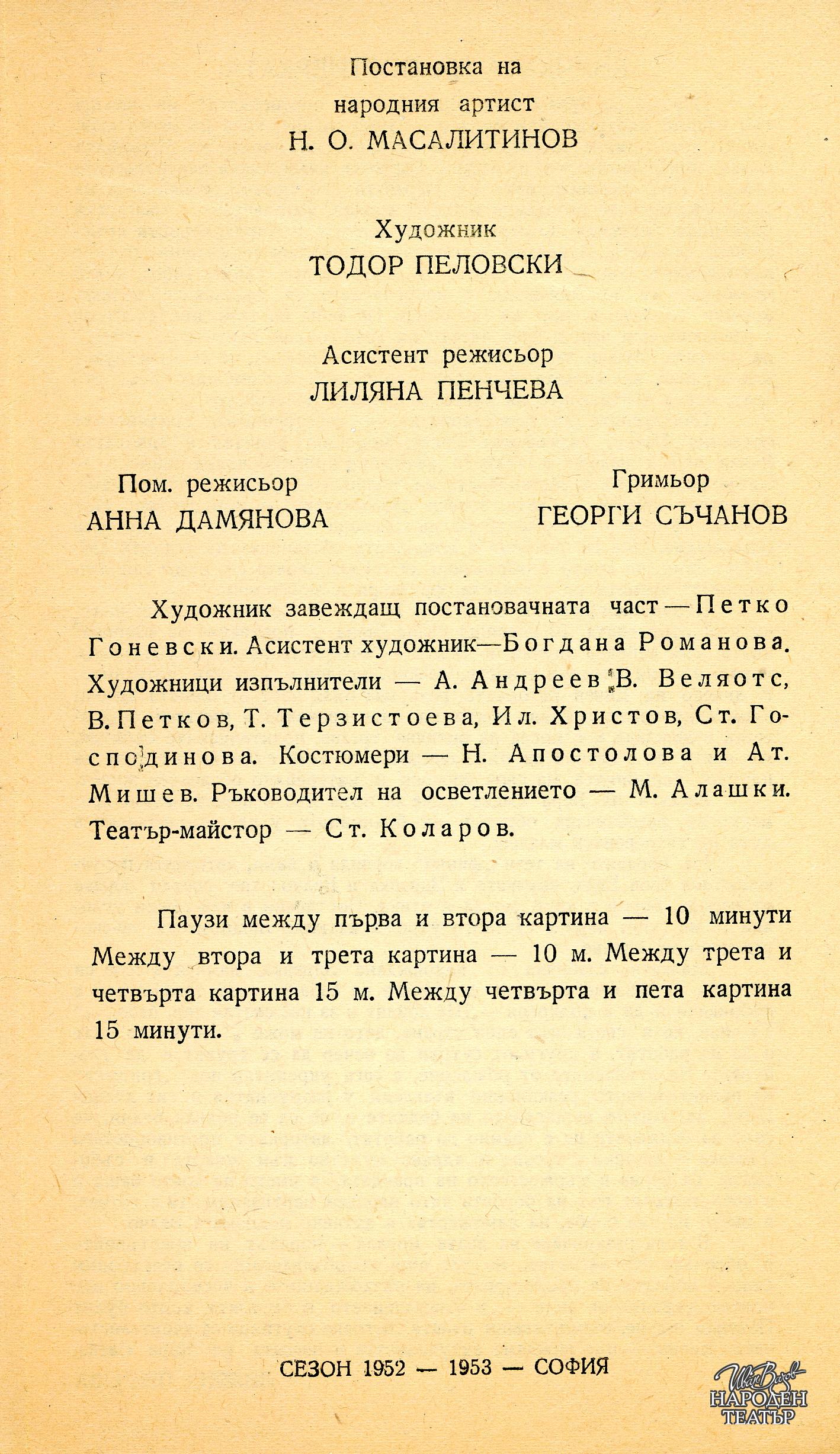 | Институция | Народен театър „Иван Вазов“, гр. София, България |