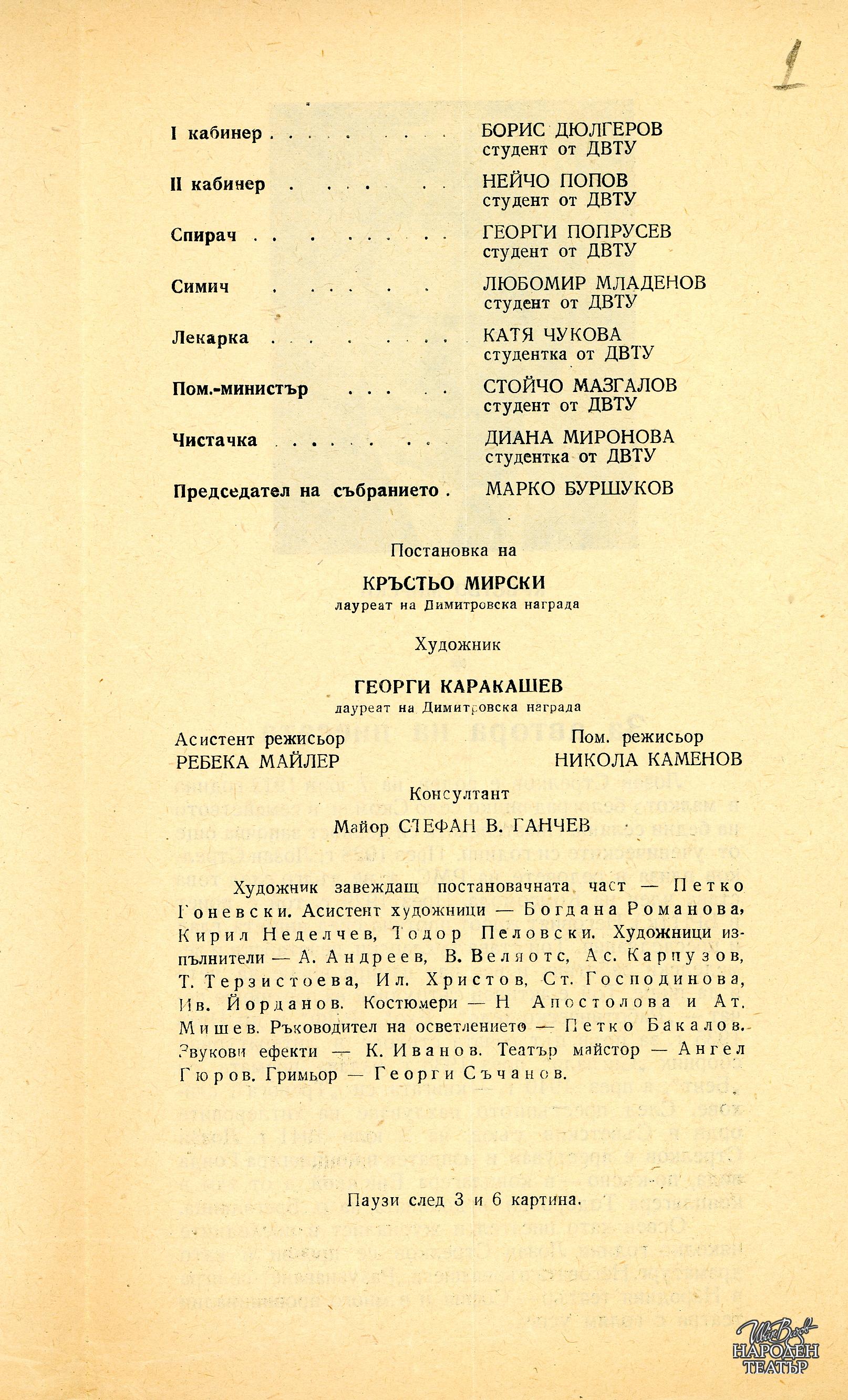 | Институция | Народен театър „Иван Вазов“, гр. София, България |