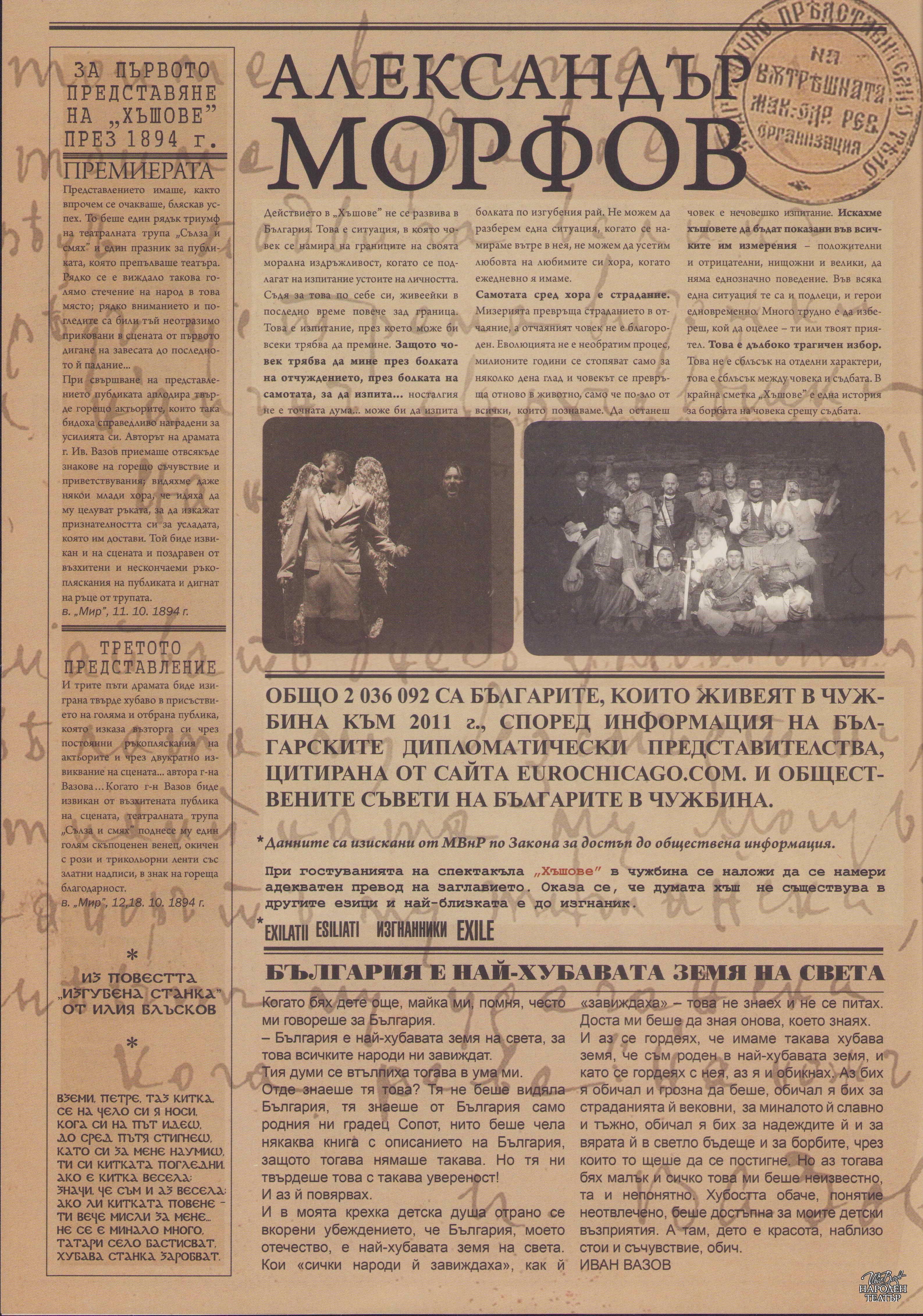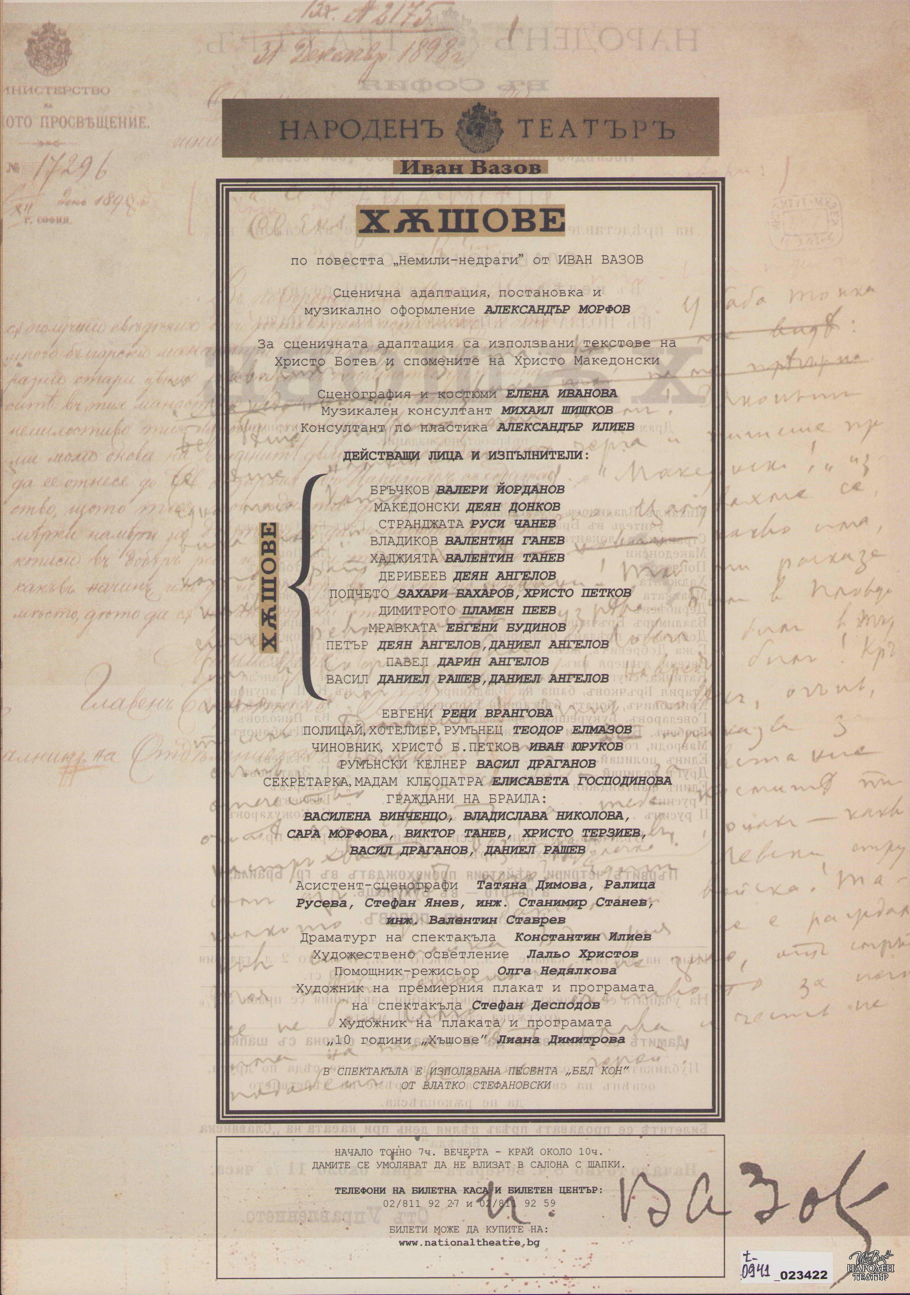 | Институция | Народен театър „Иван Вазов“, гр. София, България |