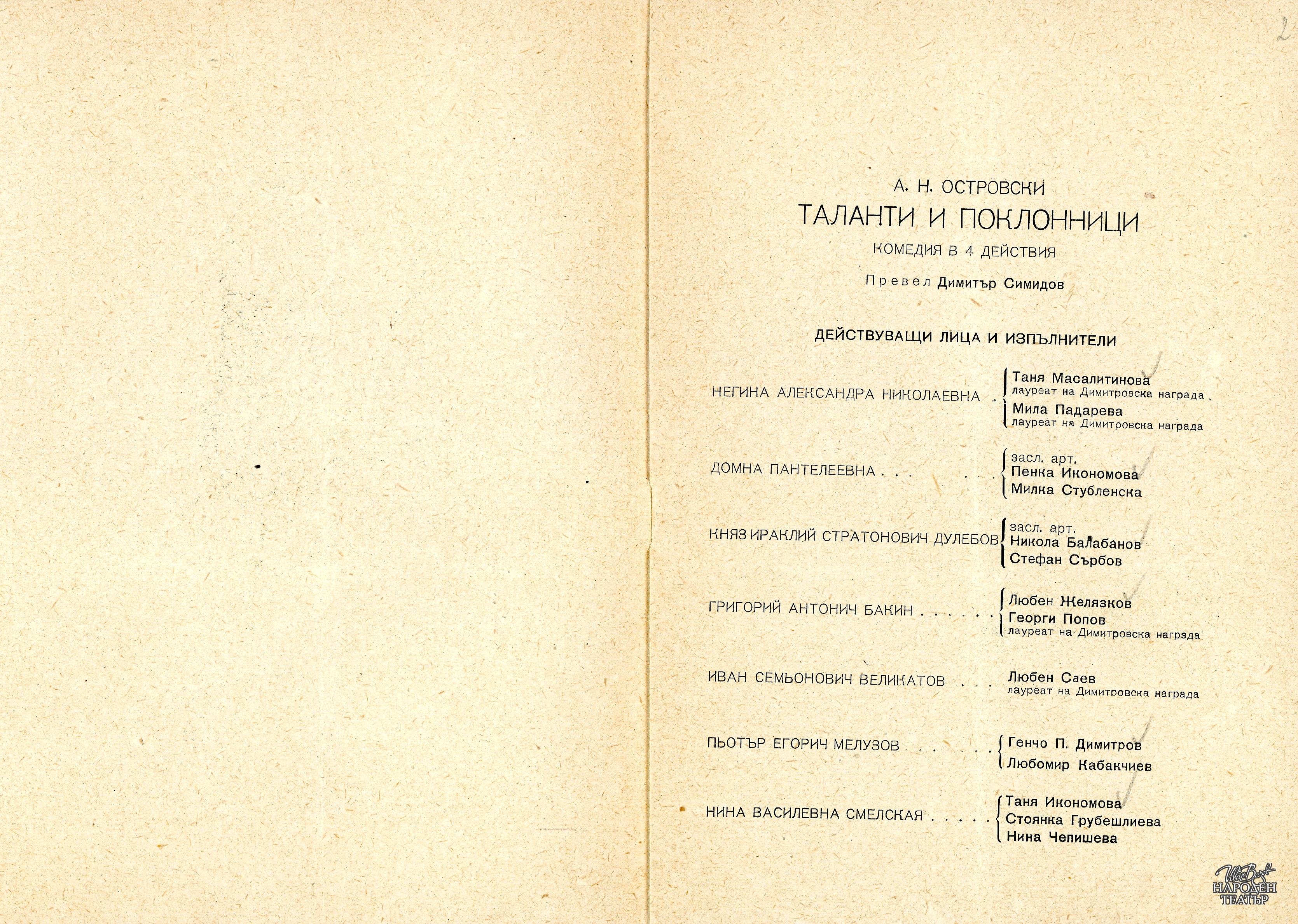 | Институция | Народен театър „Иван Вазов“, гр. София, България |