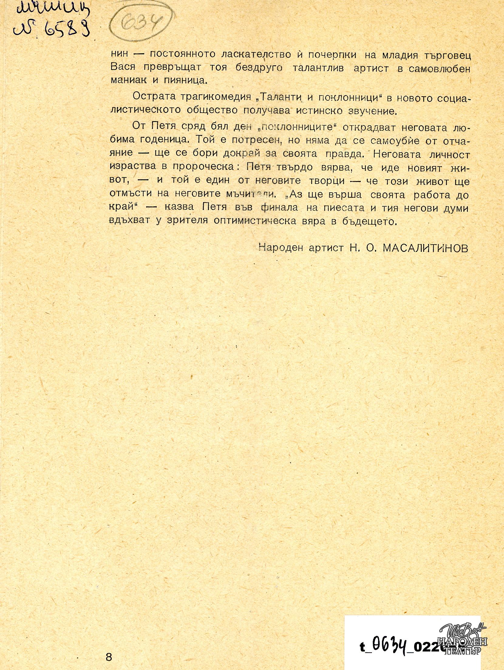 | Фонд | Театрален архив |