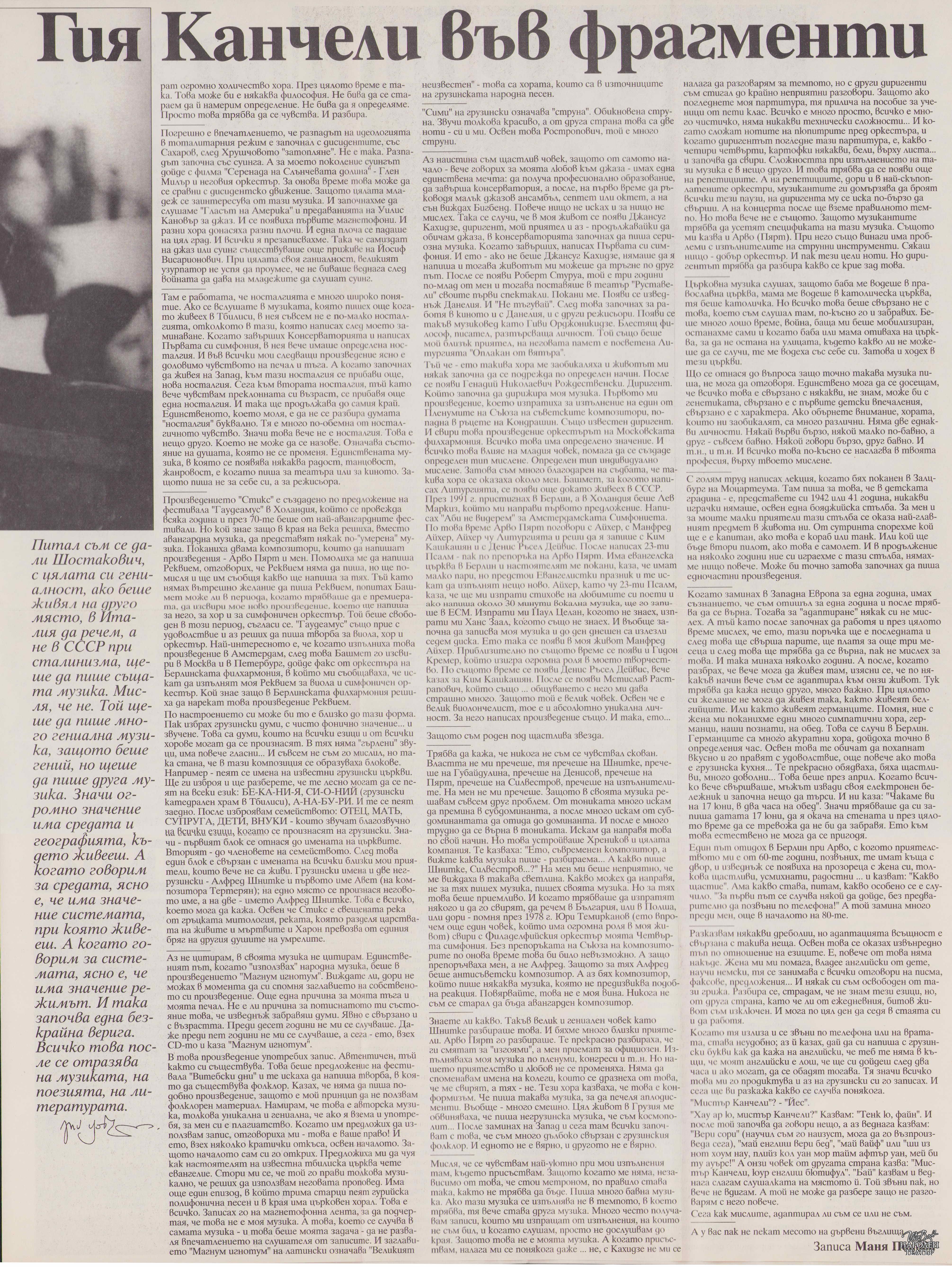 | Вид документ | Статия/интервю |