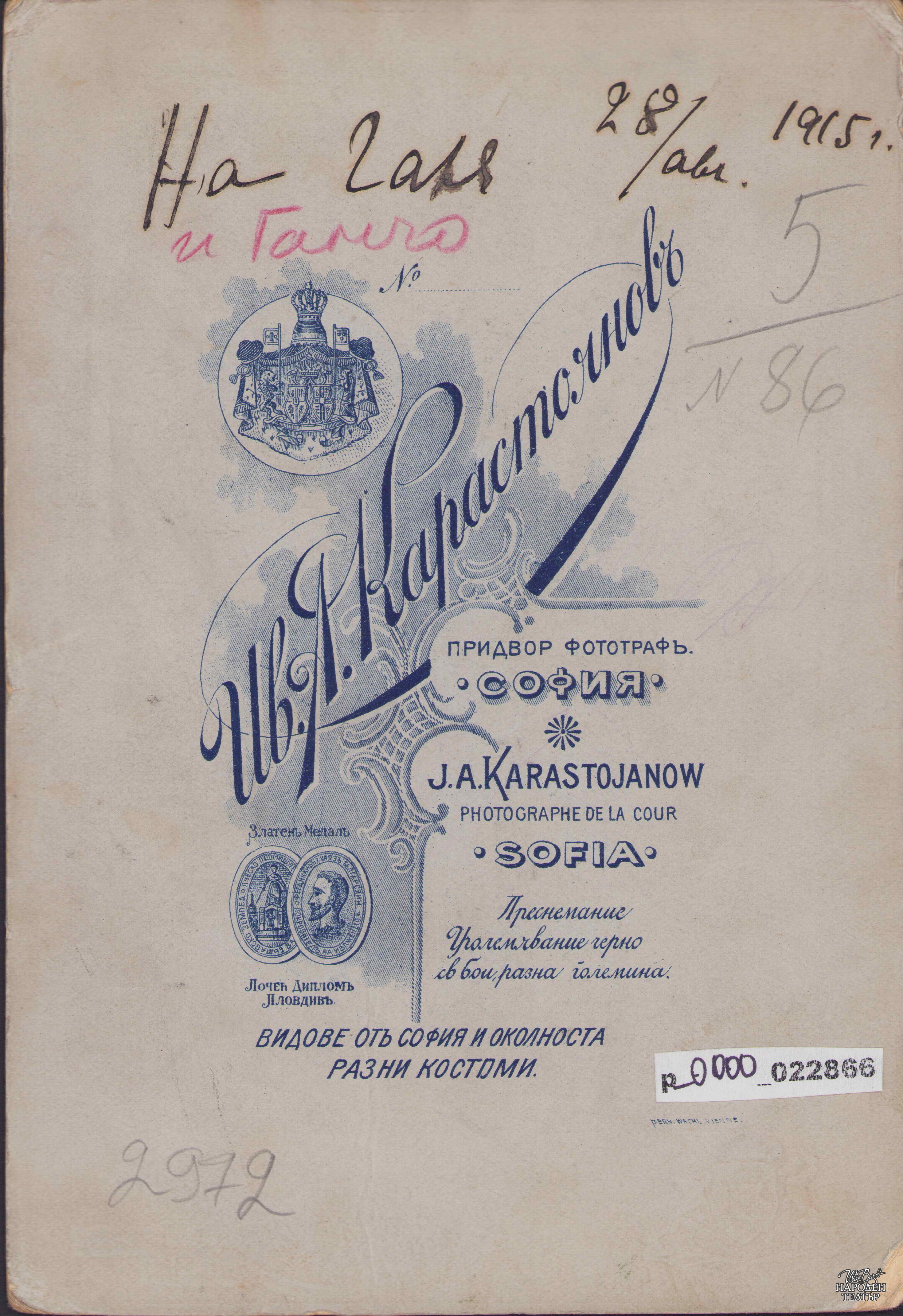| Фотограф: | Иван Карастоянов, придворен фотограф, София |