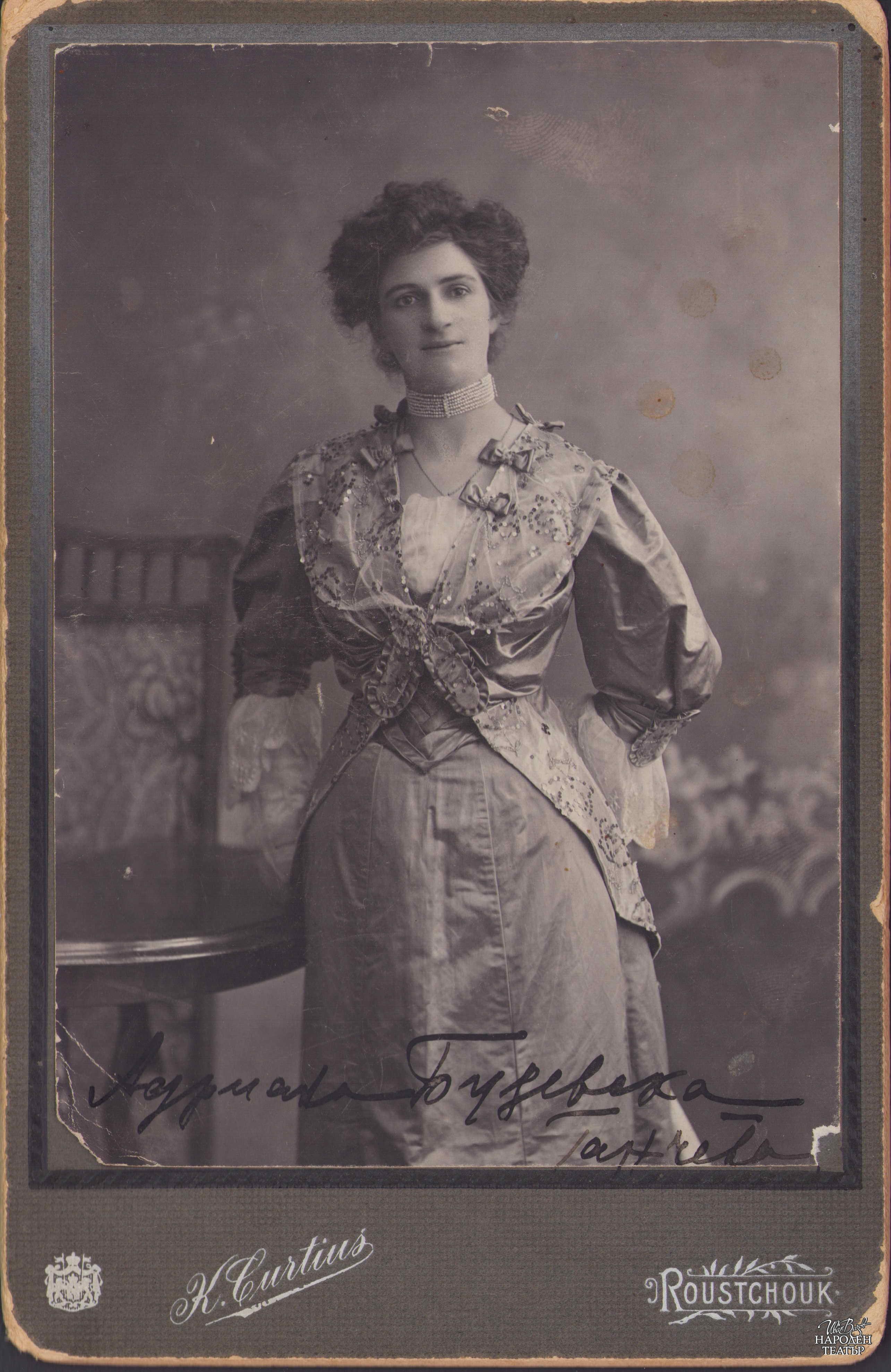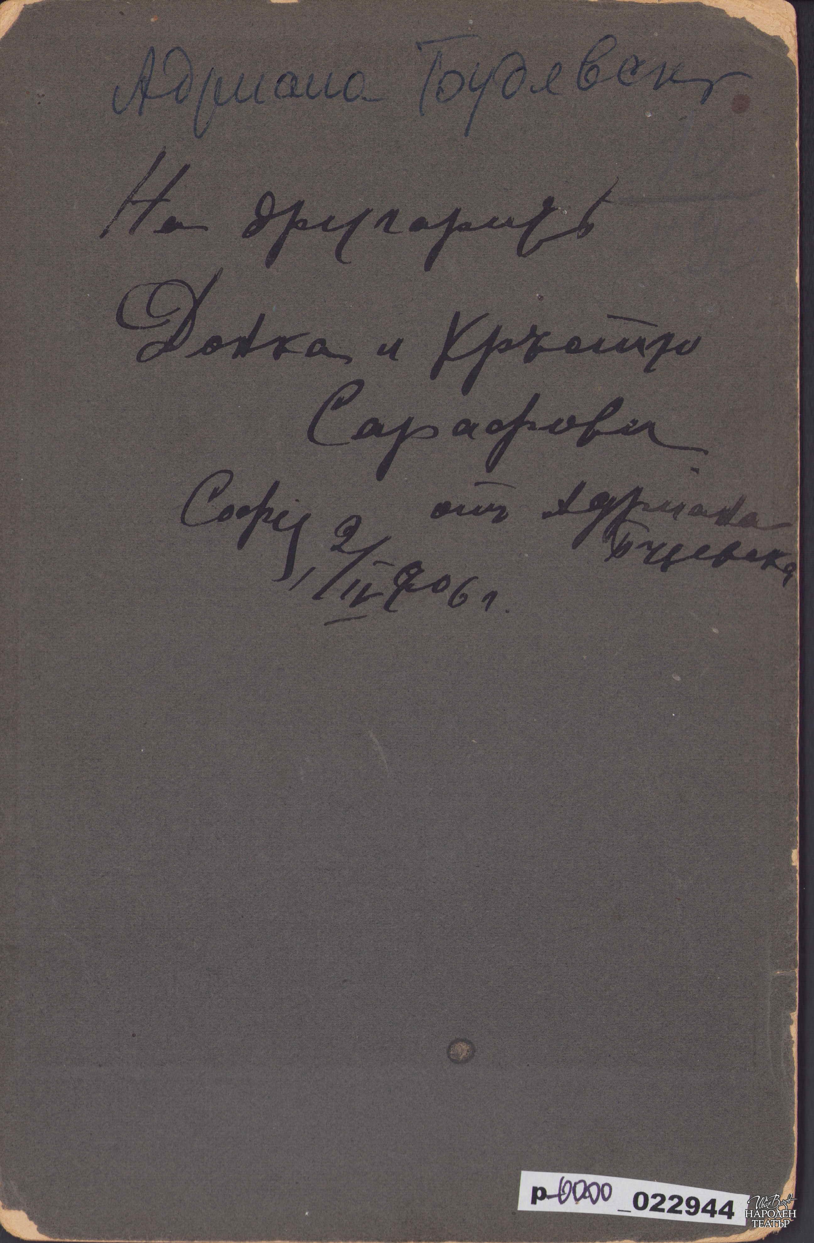 С надпис на гърба на снимката: "На другарите Донка и Кръстю Сарафови. От Адриана Будевска." |