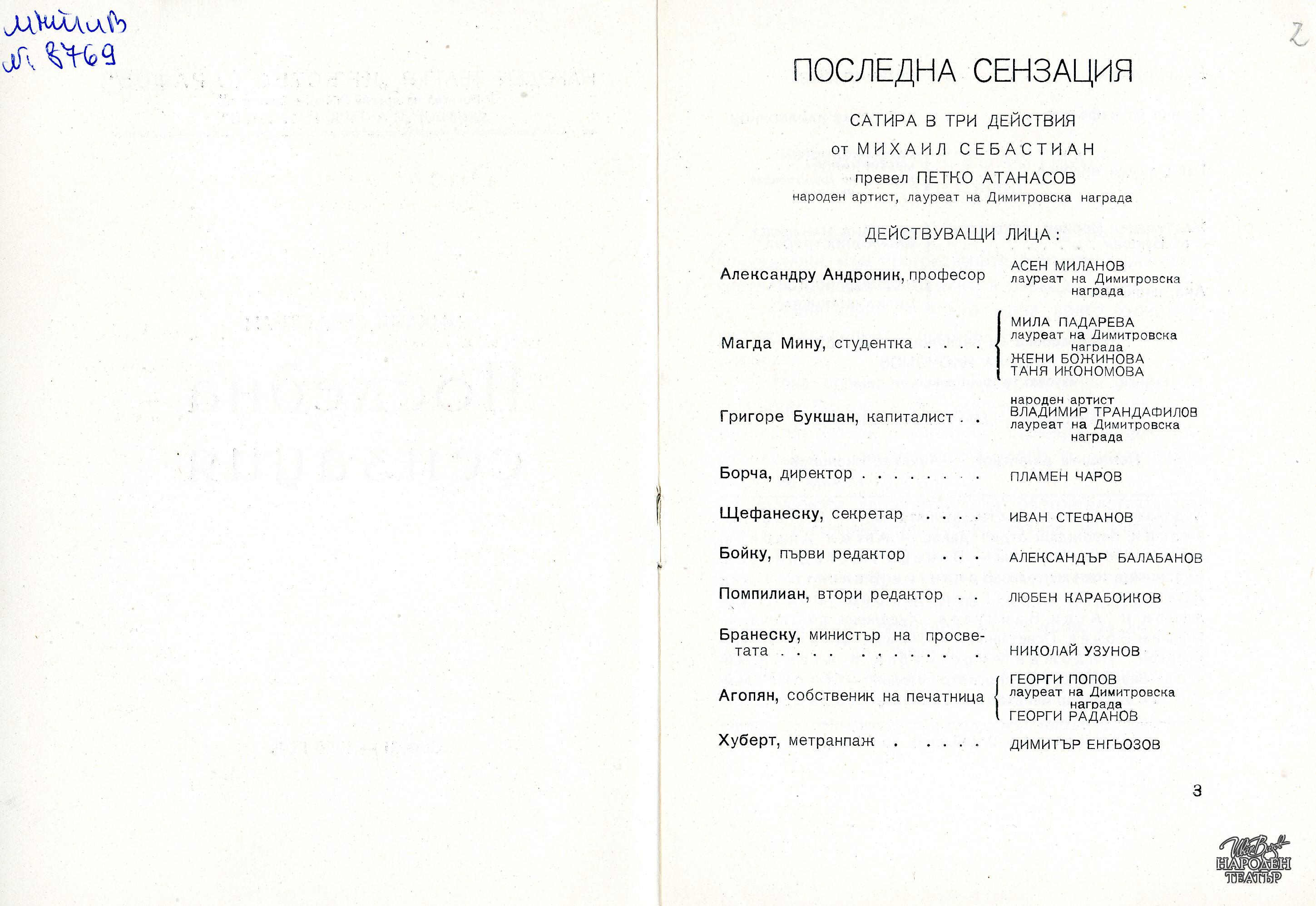 | Фонд | Театрален архив |