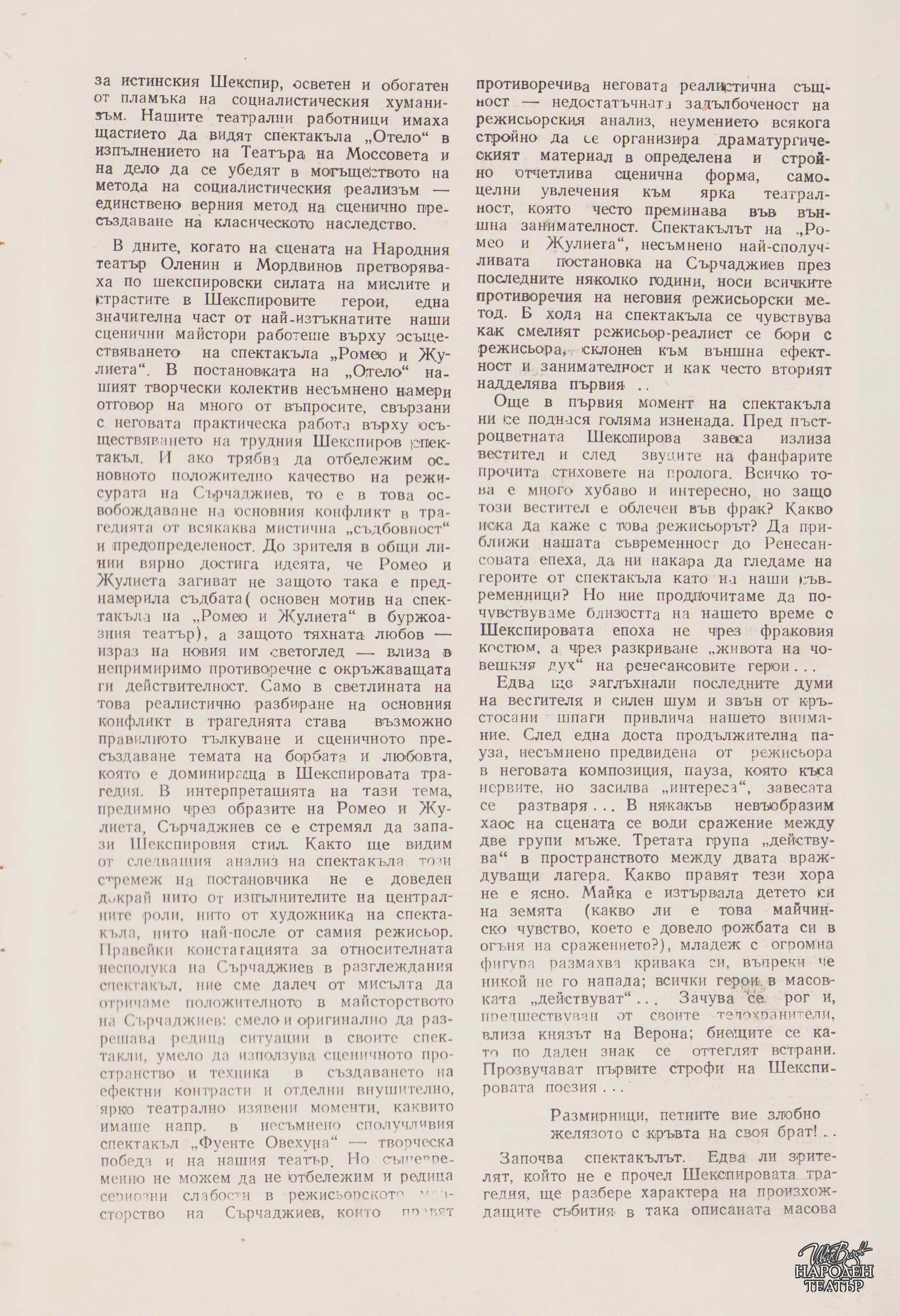 сп. Театър, 1954, кн. 10, с. 18-30. |