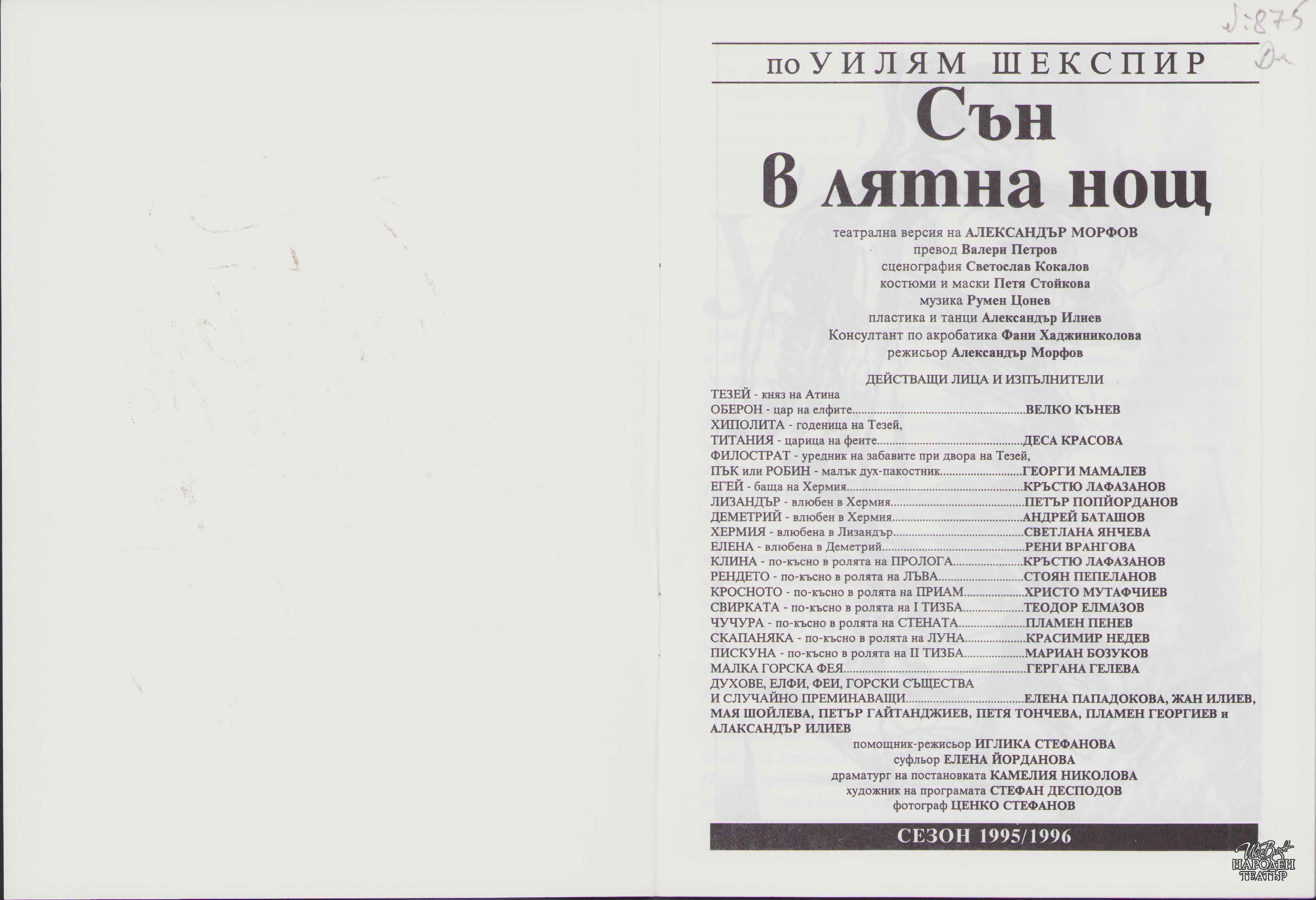 | Институция | Народен театър „Иван Вазов“, гр. София, България |