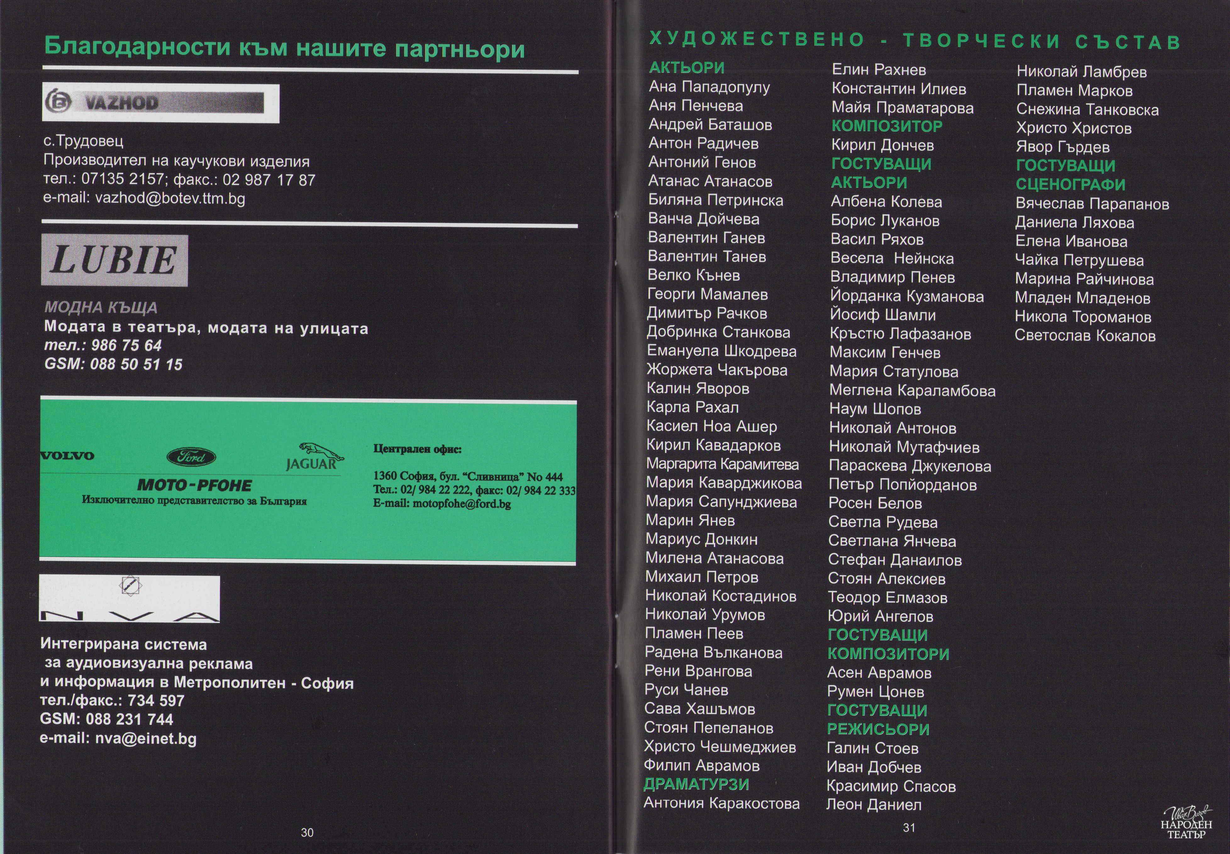 | Институция | Народен театър „Иван Вазов“, гр. София, България |