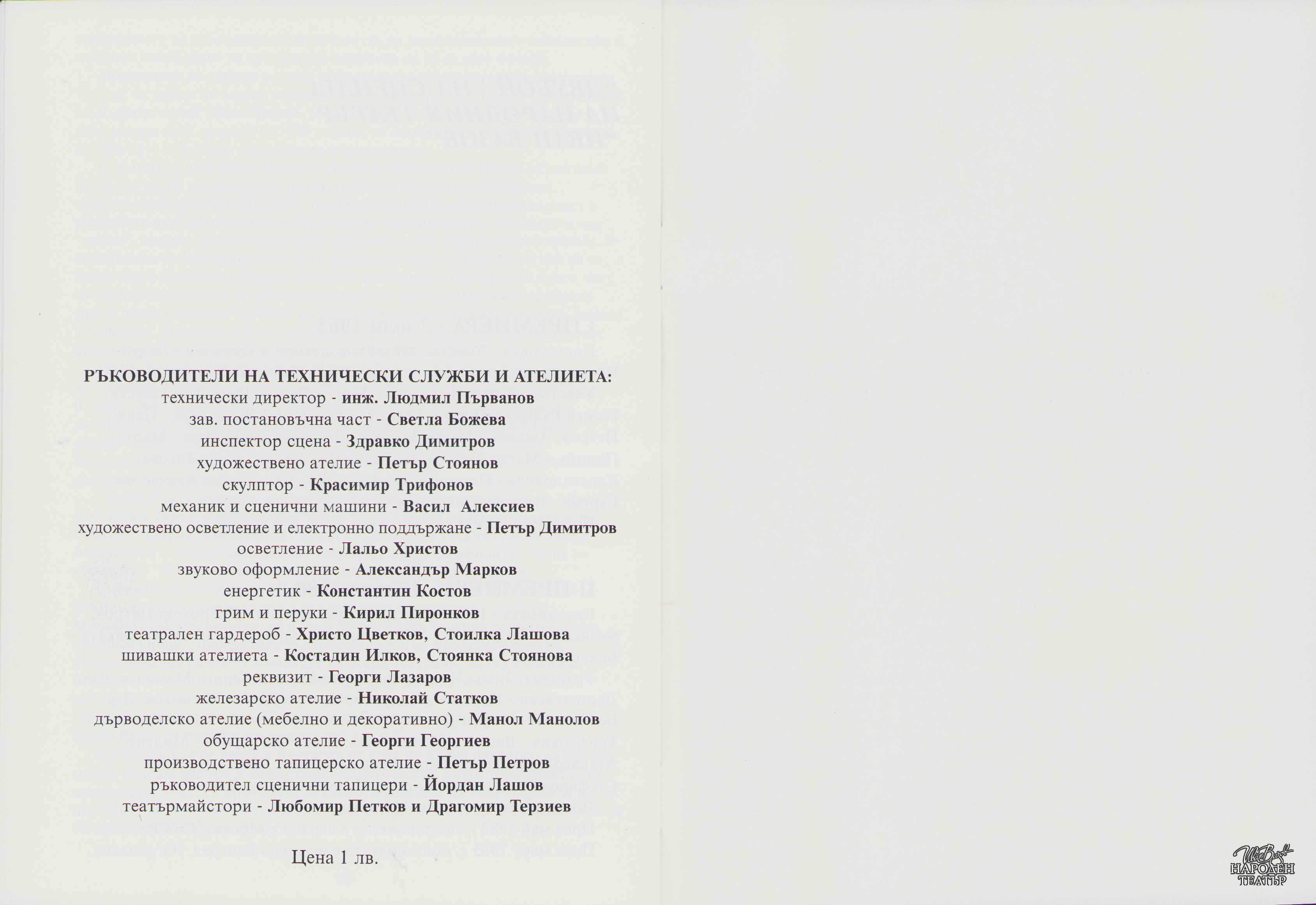 | Институция | Народен театър „Иван Вазов“, гр. София, България |
