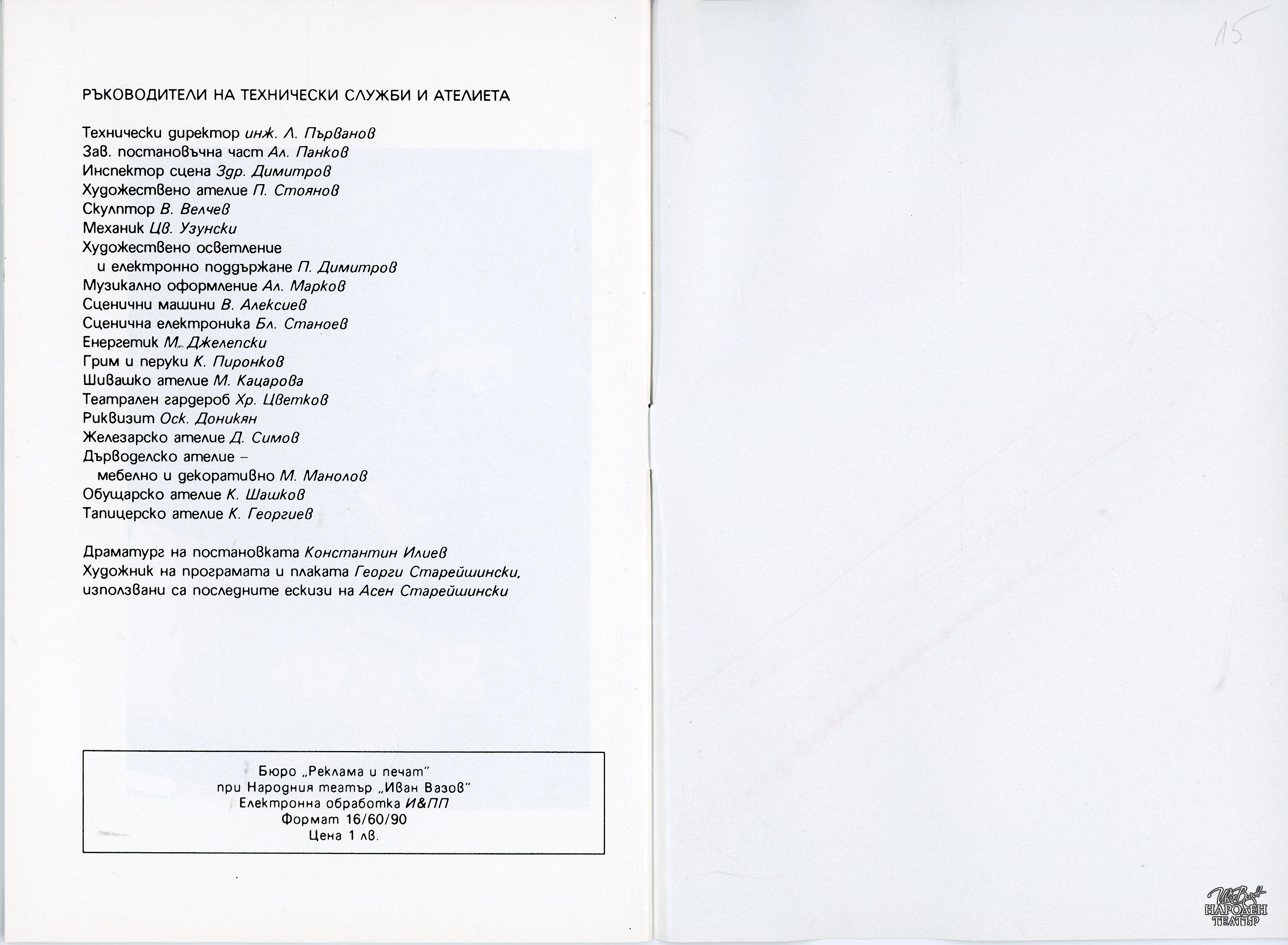 | Институция | Народен театър „Иван Вазов“, гр. София, България |