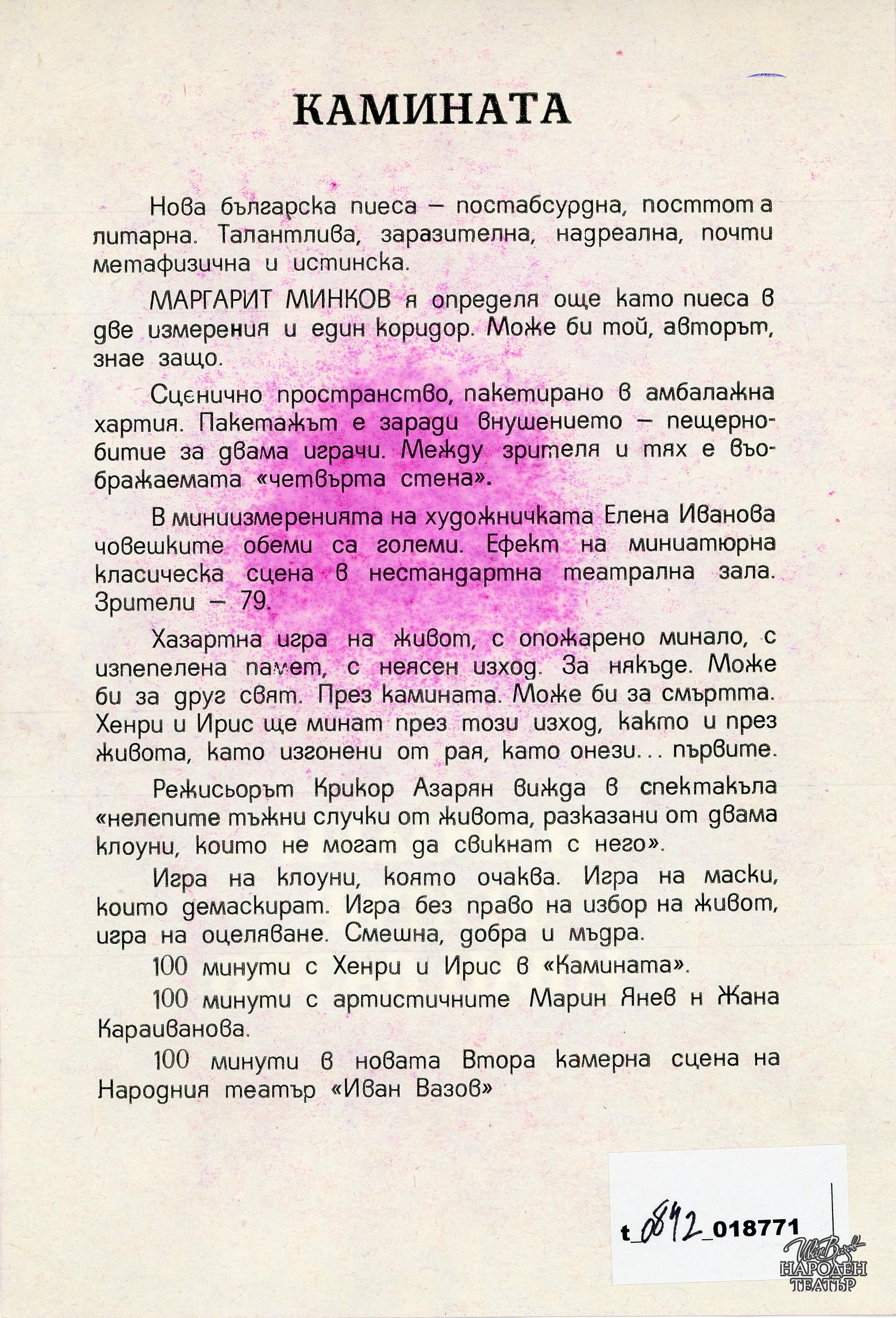| Фонд | Театрален архив |