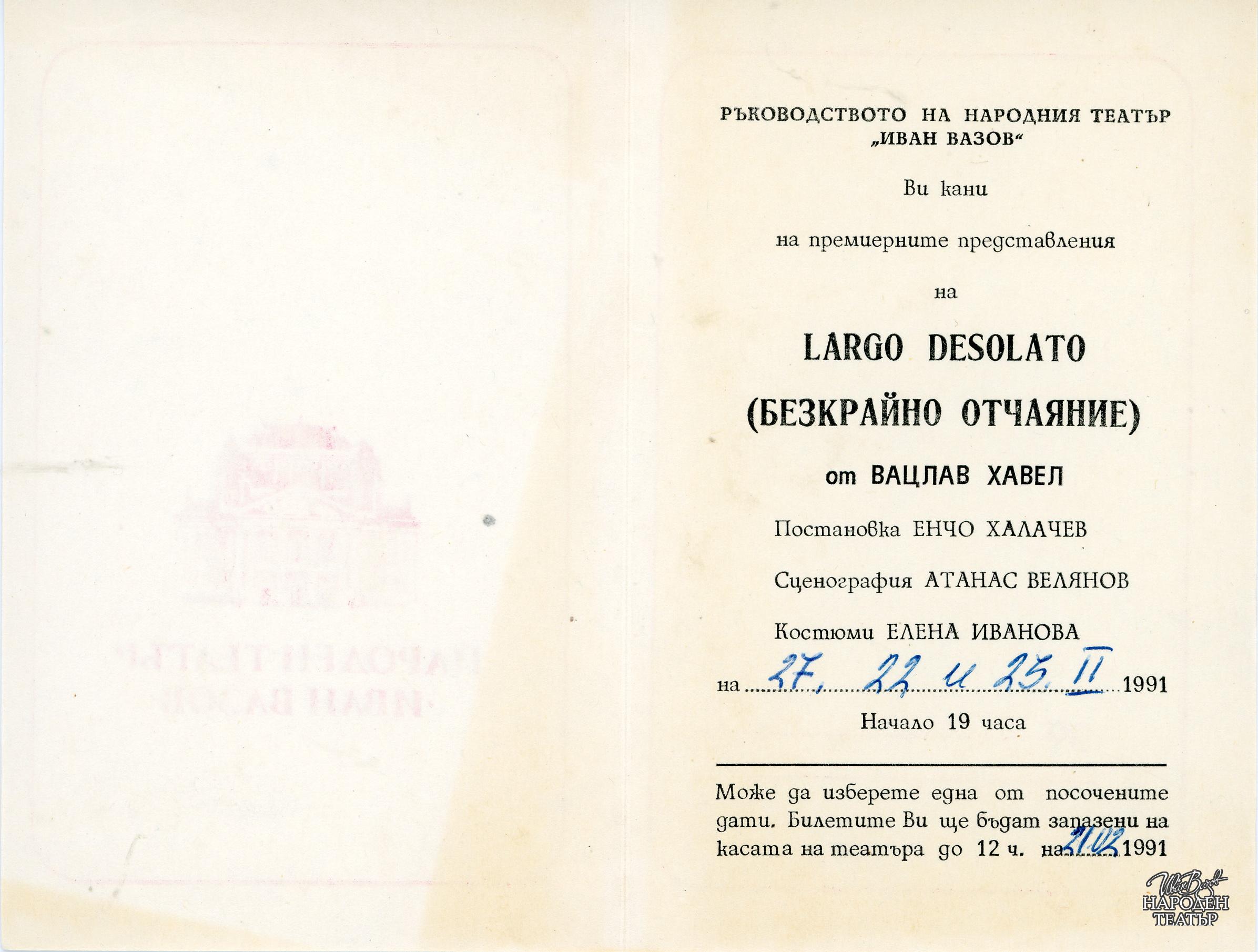 | Институция | Народен театър „Иван Вазов“, гр. София, България |