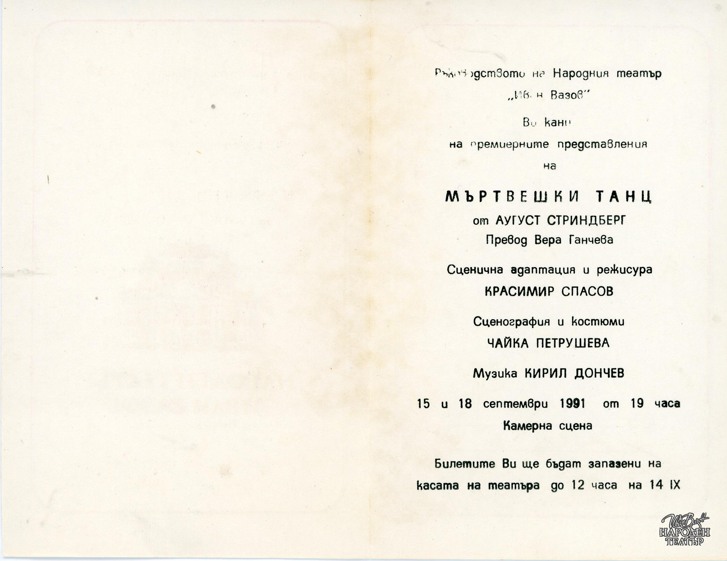 | Институция | Народен театър „Иван Вазов“, гр. София, България |