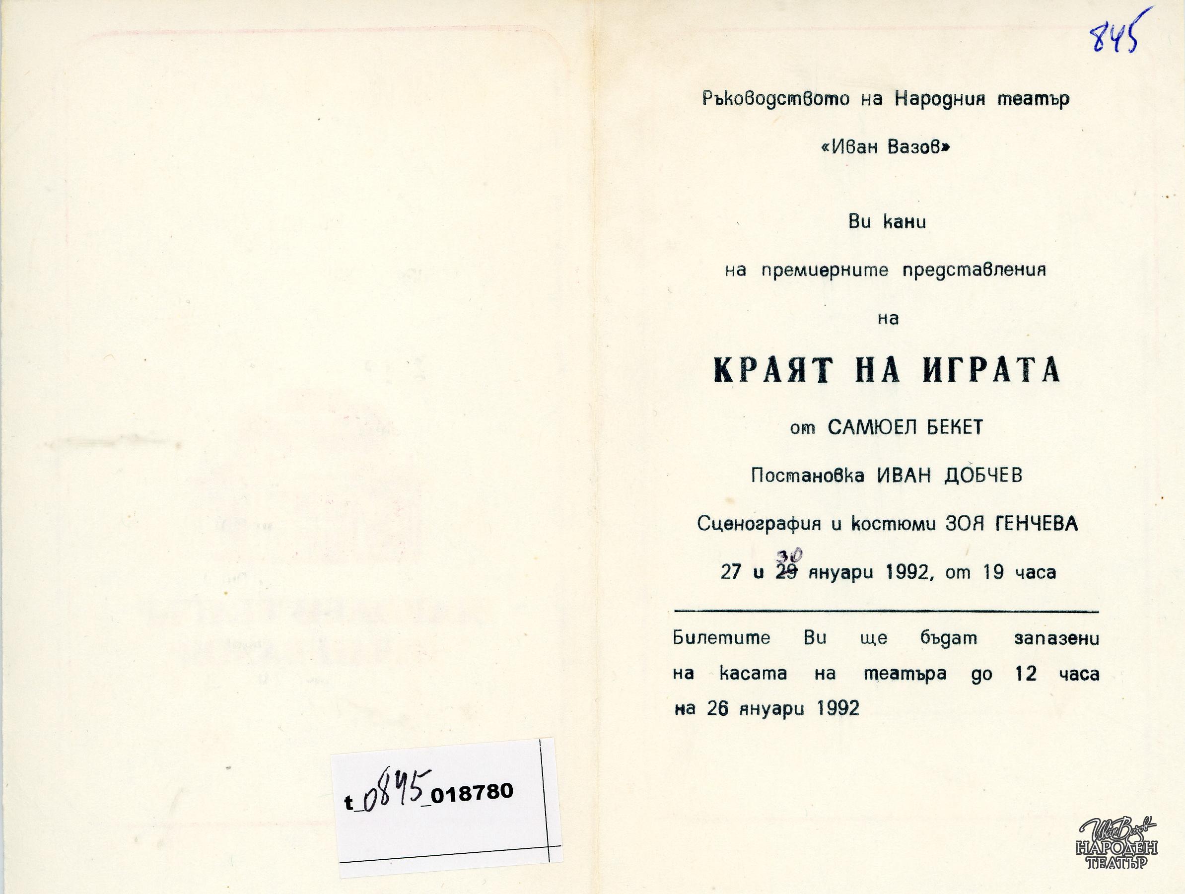 | Институция | Народен театър „Иван Вазов“, гр. София, България |