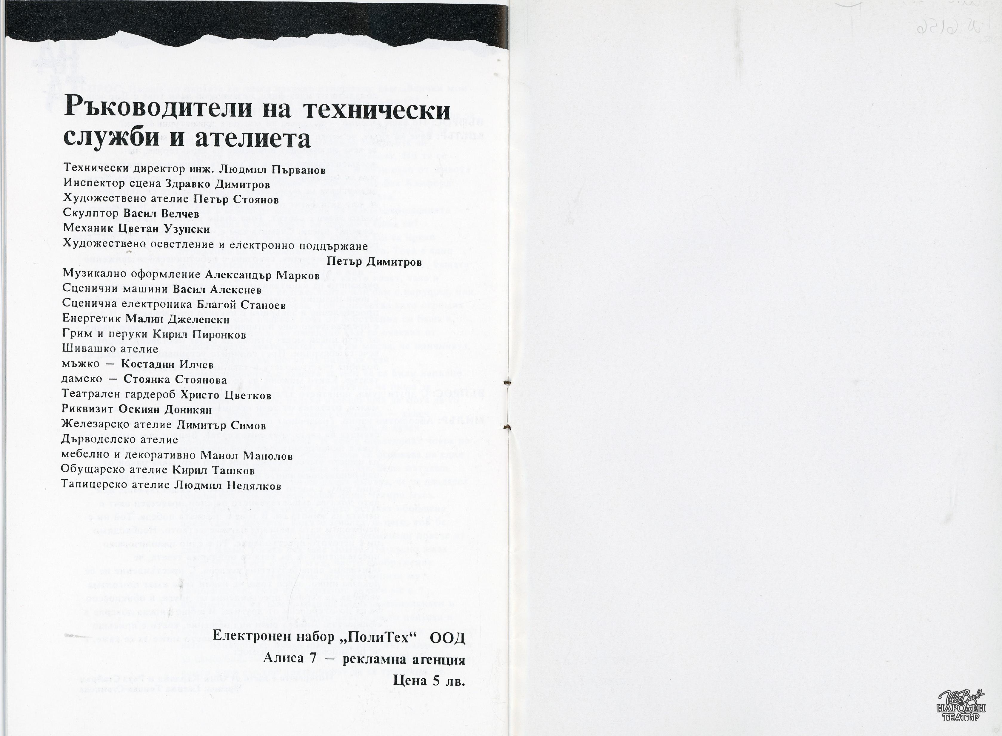 | Институция | Народен театър „Иван Вазов“, гр. София, България |