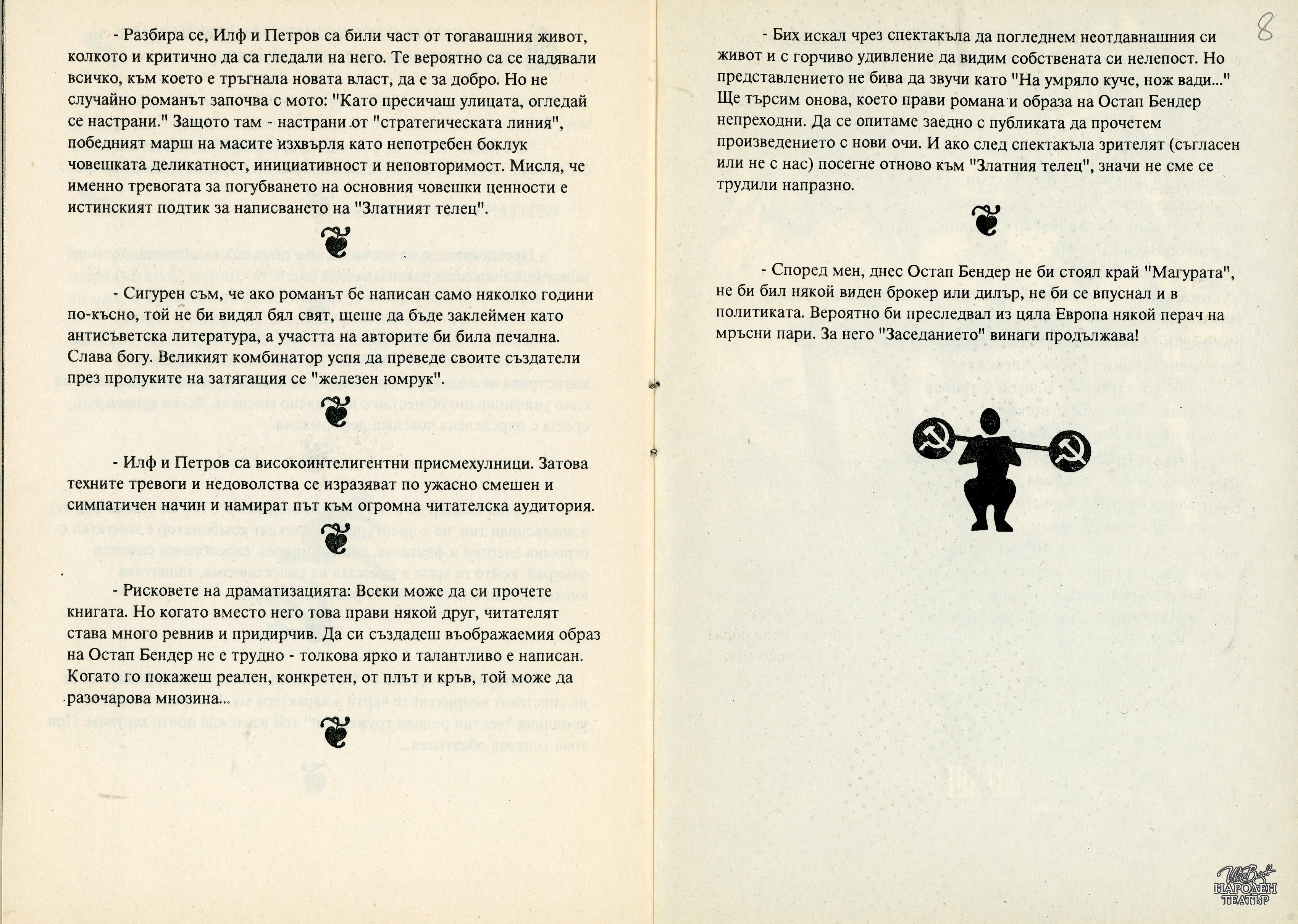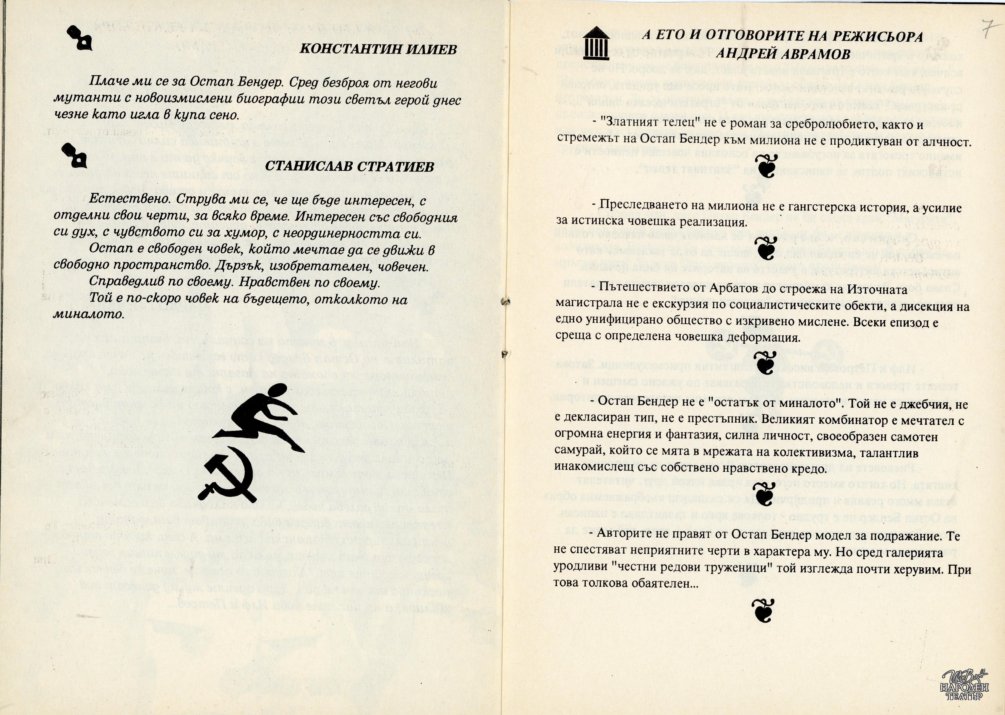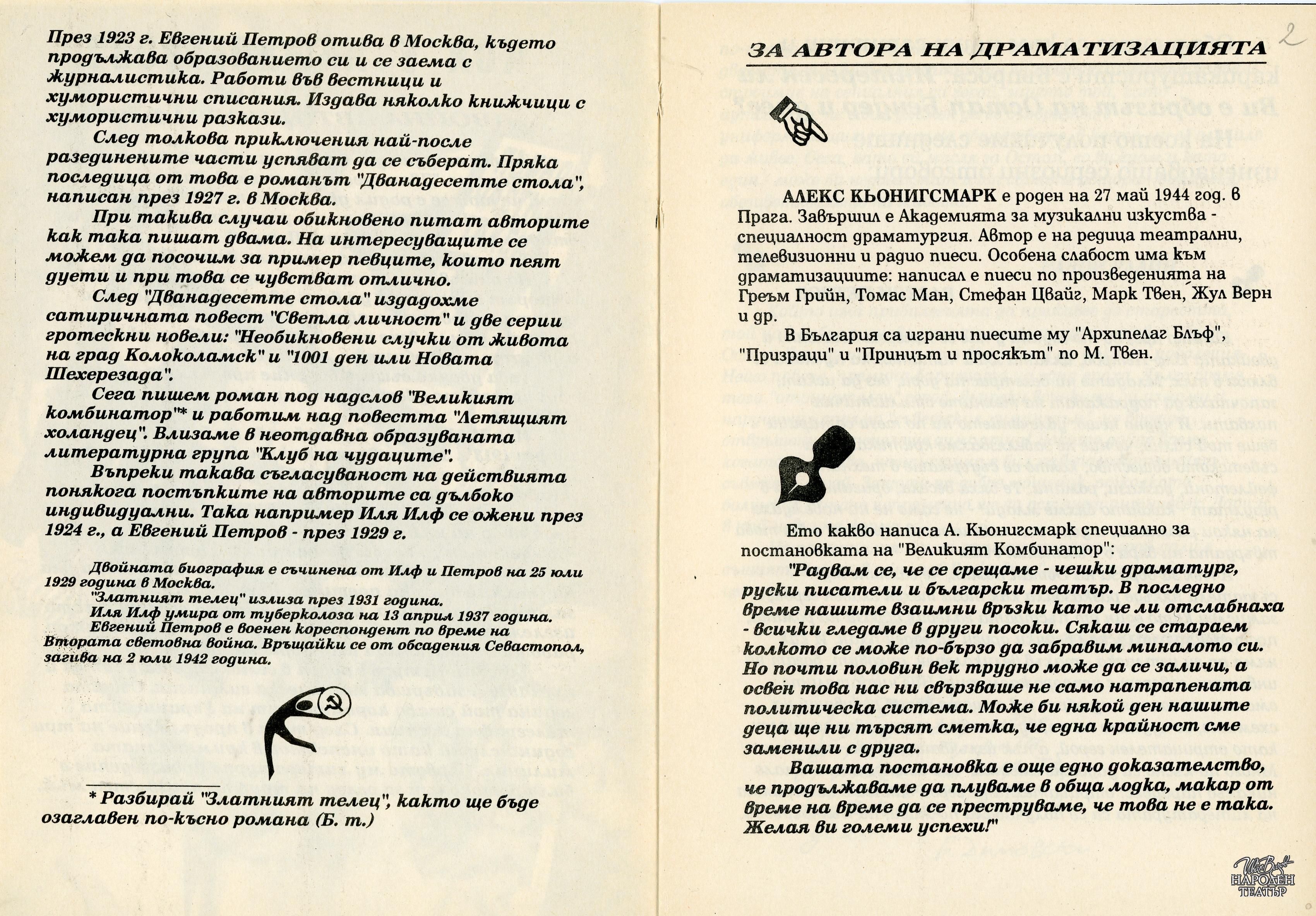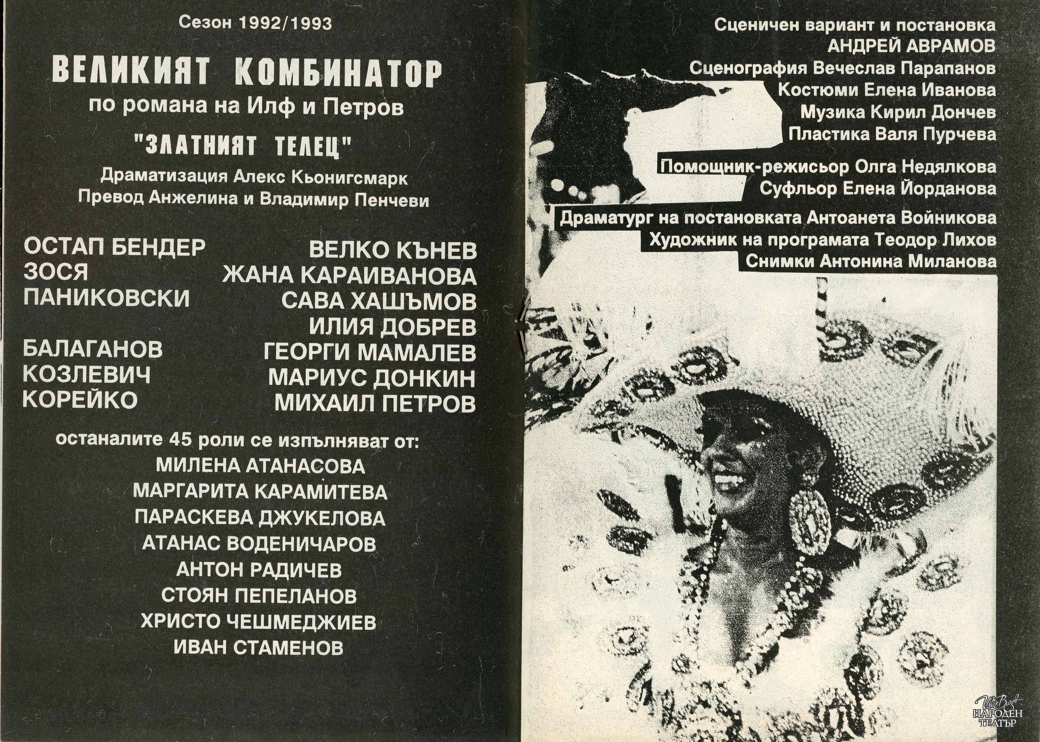 драматизация на Алекс Кьонигсмарк (по романа "Златният телец" на Иля Илф и Евгений Петров) |