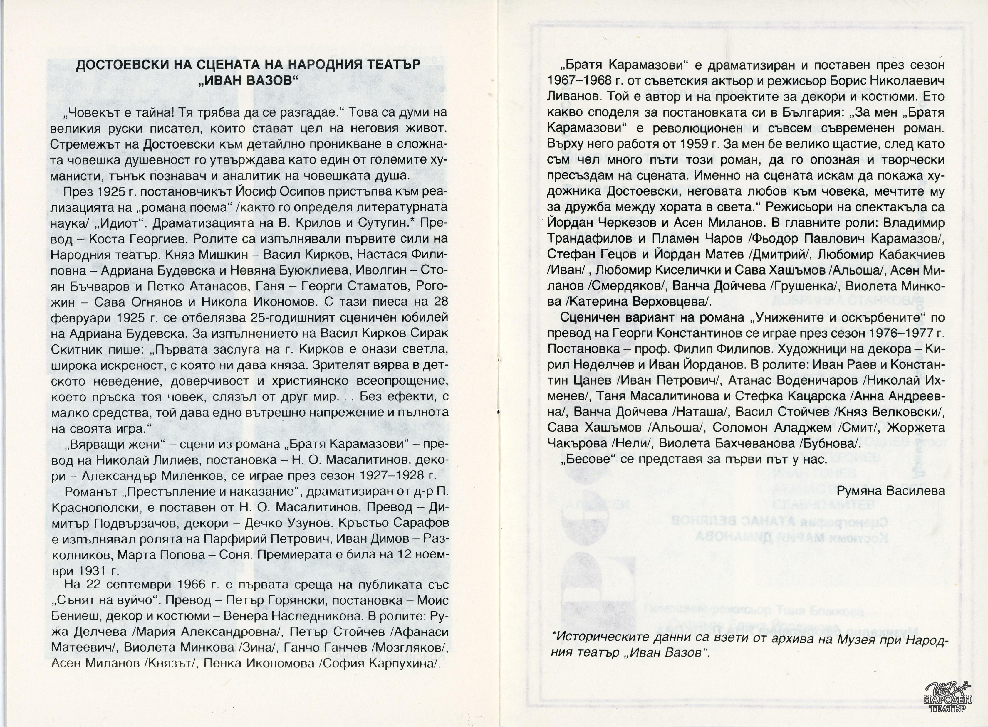 драматизация от Банчо Банов, Енчо Халачев и Асен Миланов (по едноименния роман на Ф. М. Достоевски) |