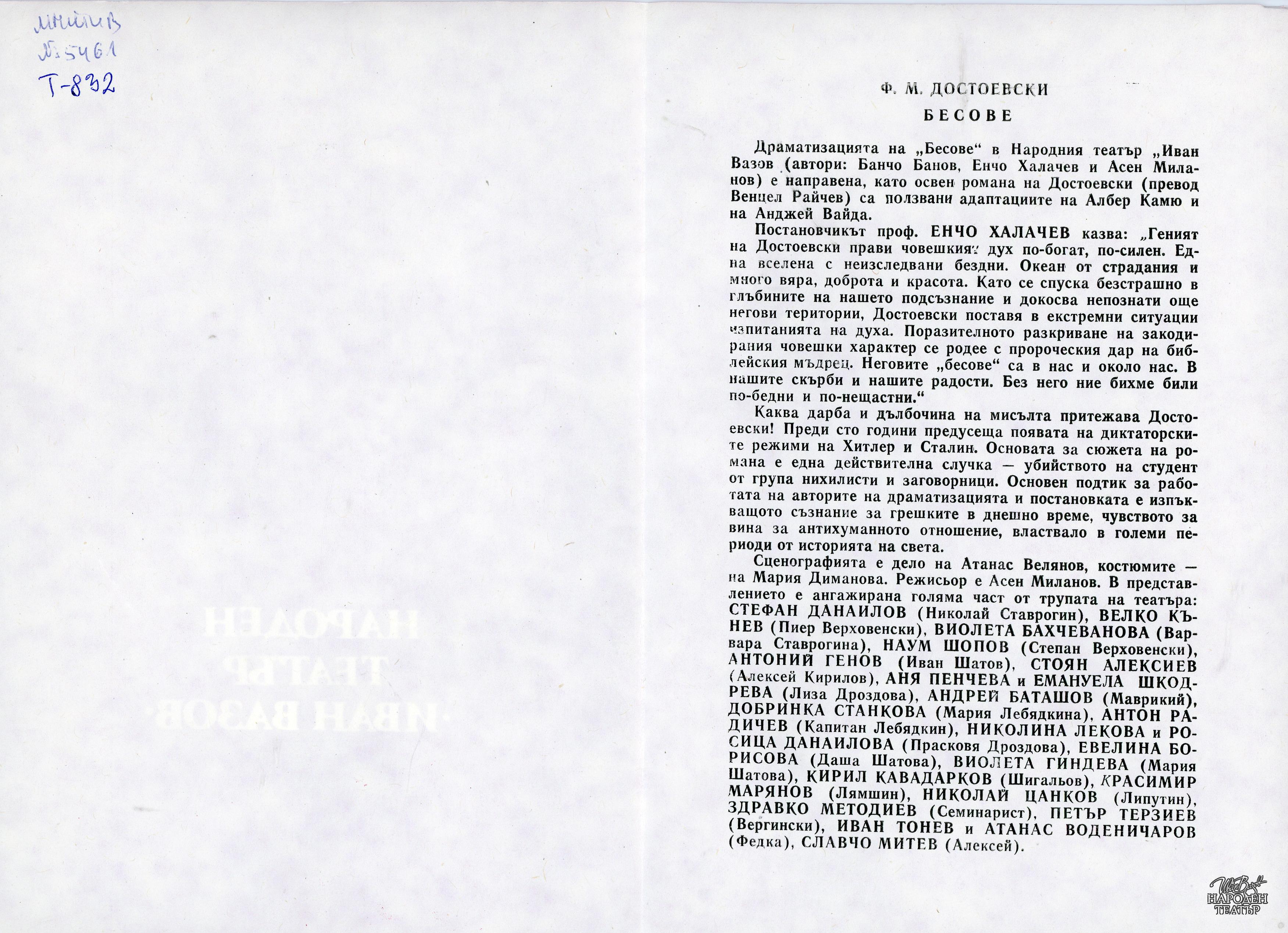 | Автор: | драматизация от Банчо Банов, Енчо Халачев и Асен Миланов (по едноименния роман на Ф. М. Достоевски) |
