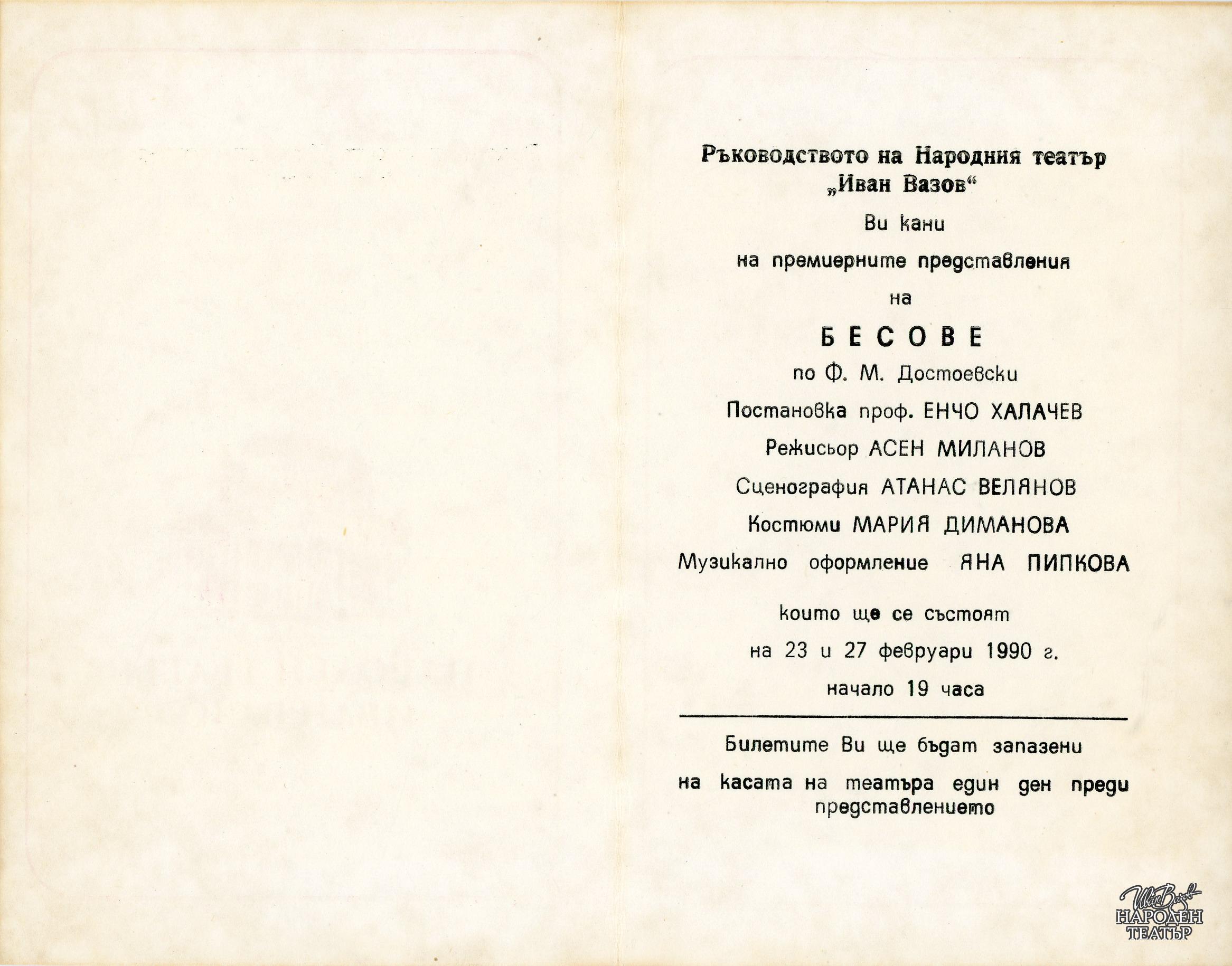 | Институция | Народен театър „Иван Вазов“, гр. София, България |