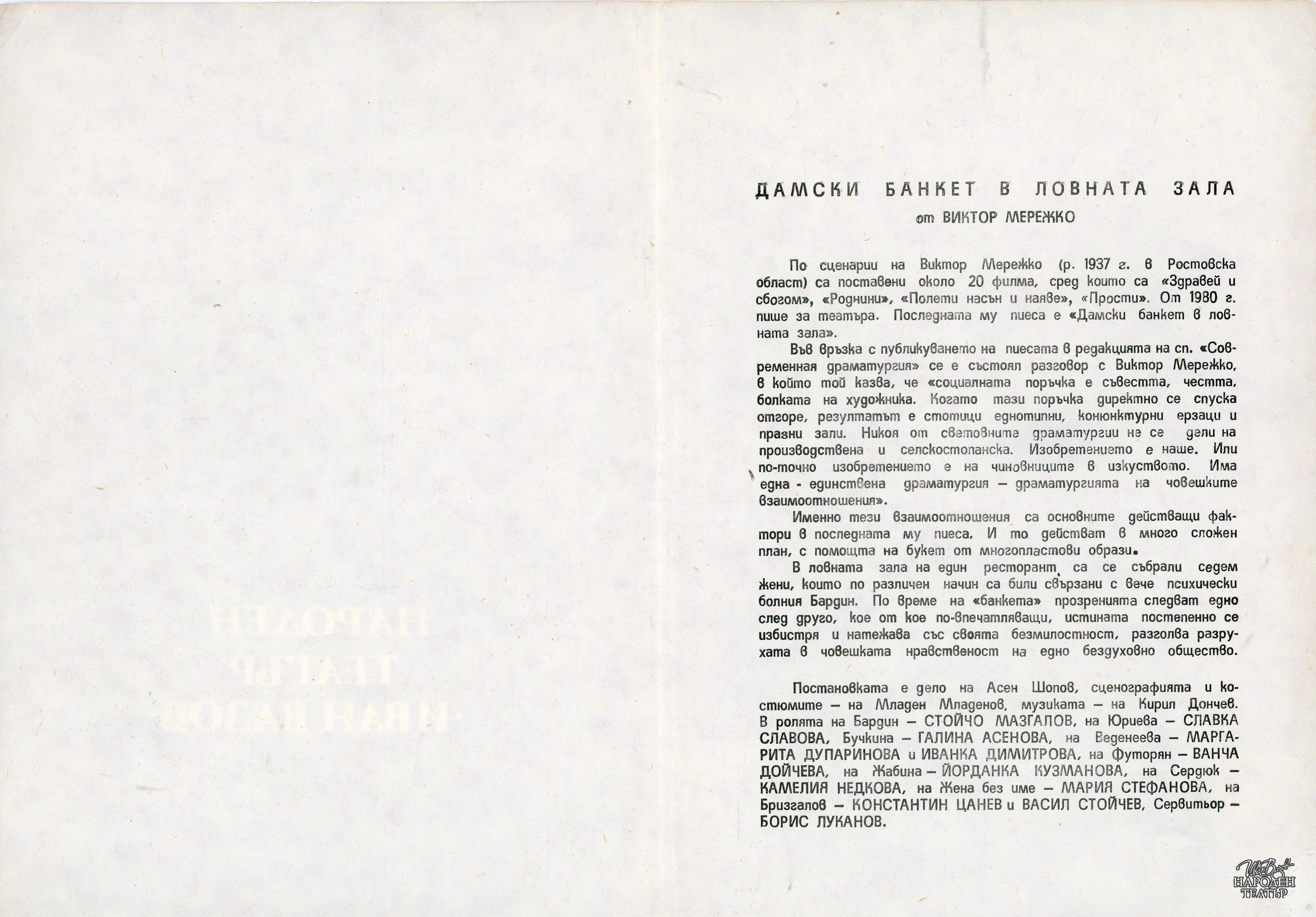 | Институция | Народен театър „Иван Вазов“, гр. София, България |