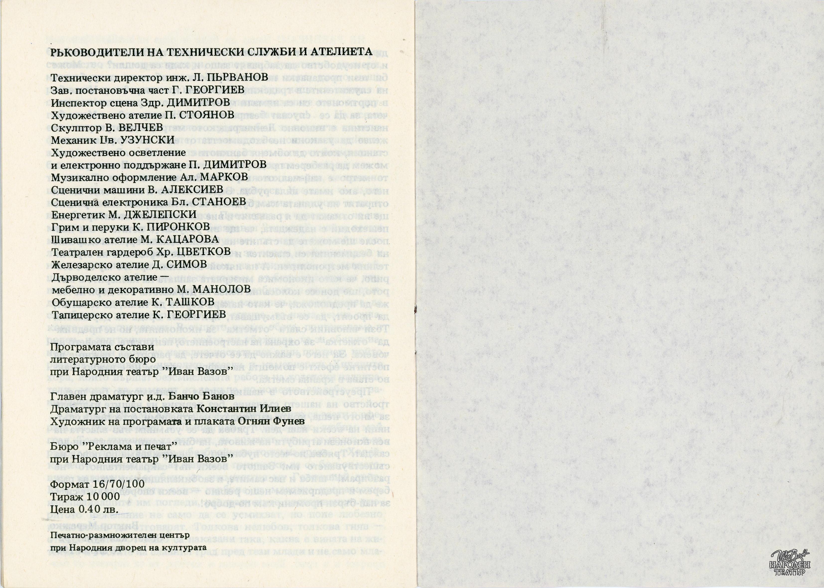 | Институция | Народен театър „Иван Вазов“, гр. София, България |