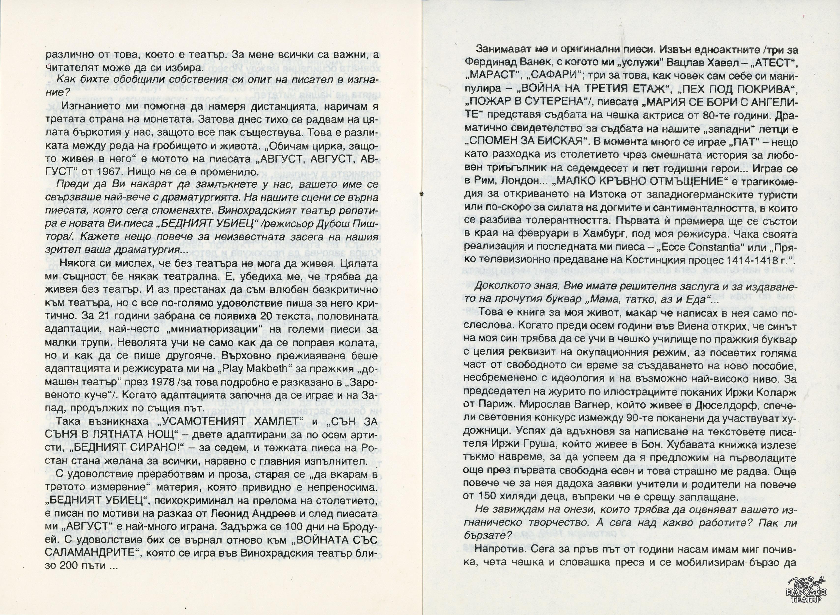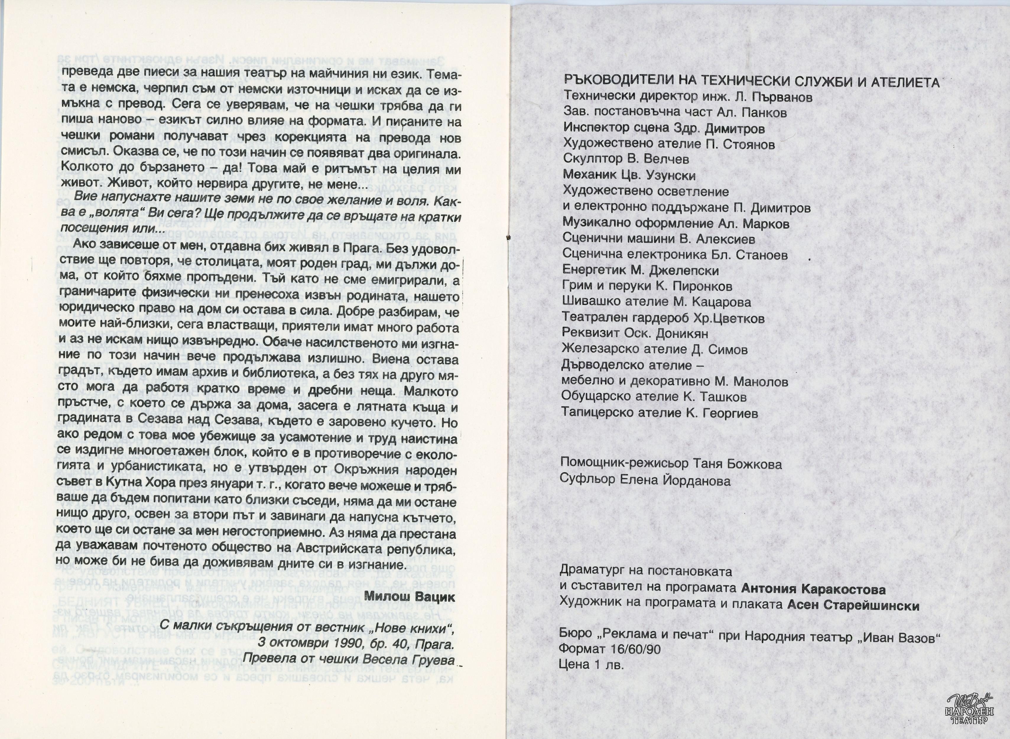 | Институция | Народен театър „Иван Вазов“, гр. София, България |