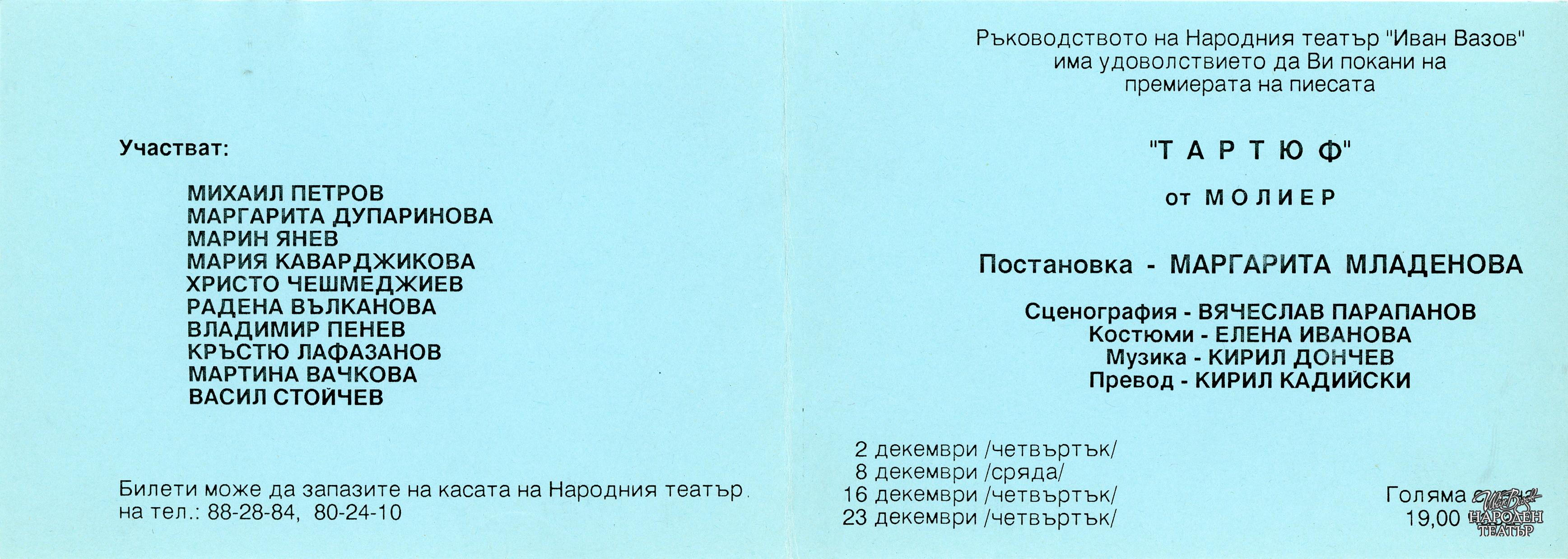 | Институция | Народен театър „Иван Вазов“, гр. София, България |