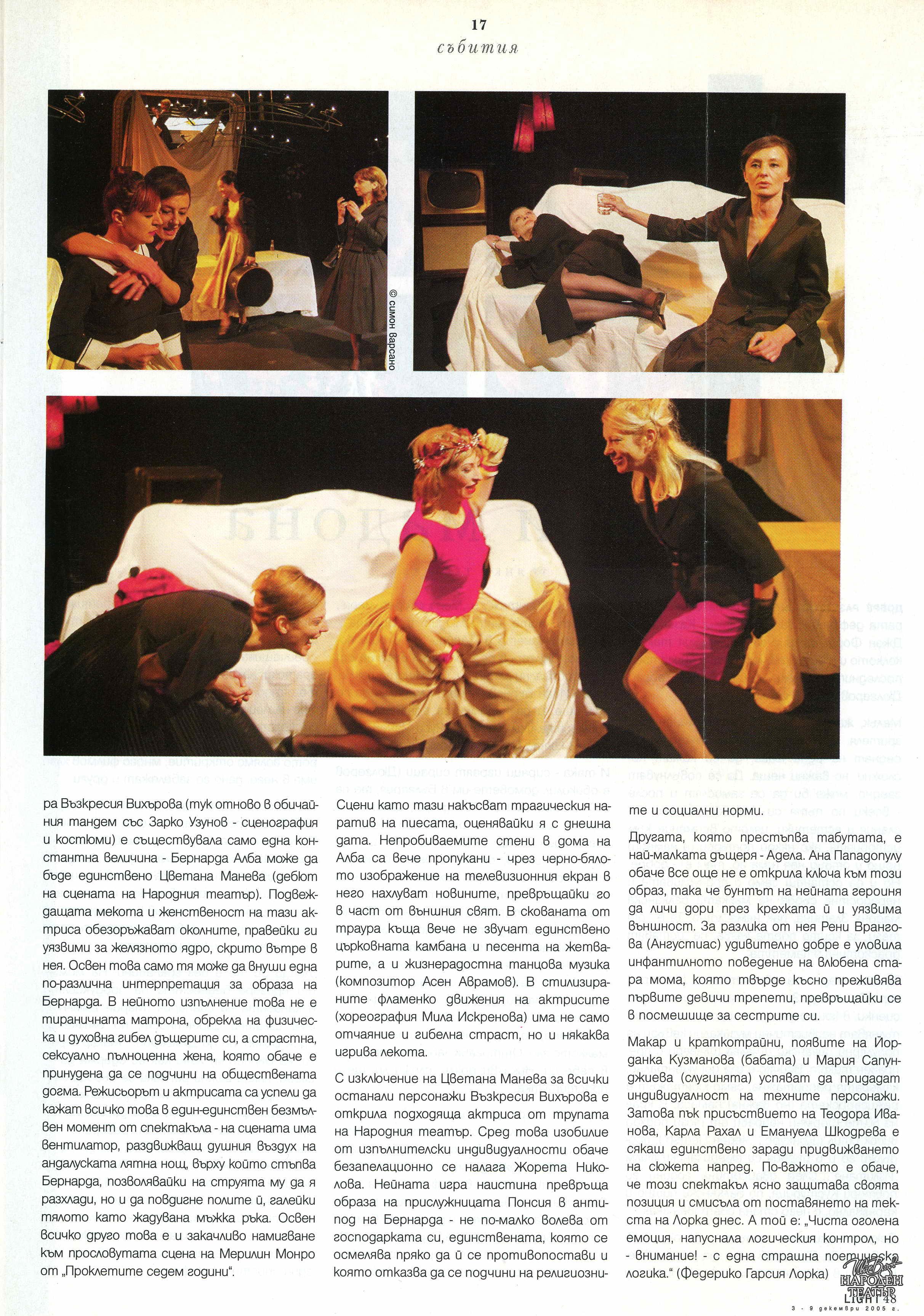За "Домът на Бернарда Алба". |
