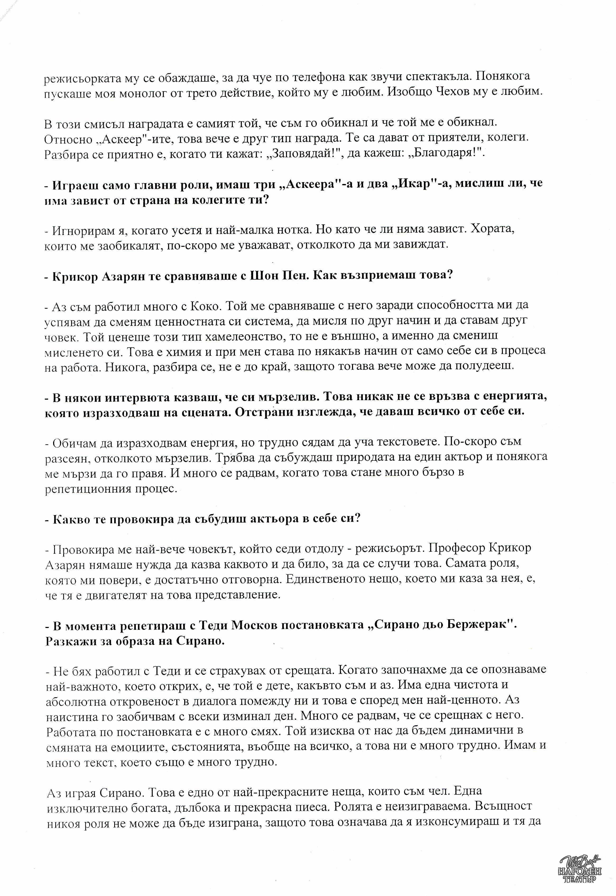 | Вид документ | Статия/интервю |