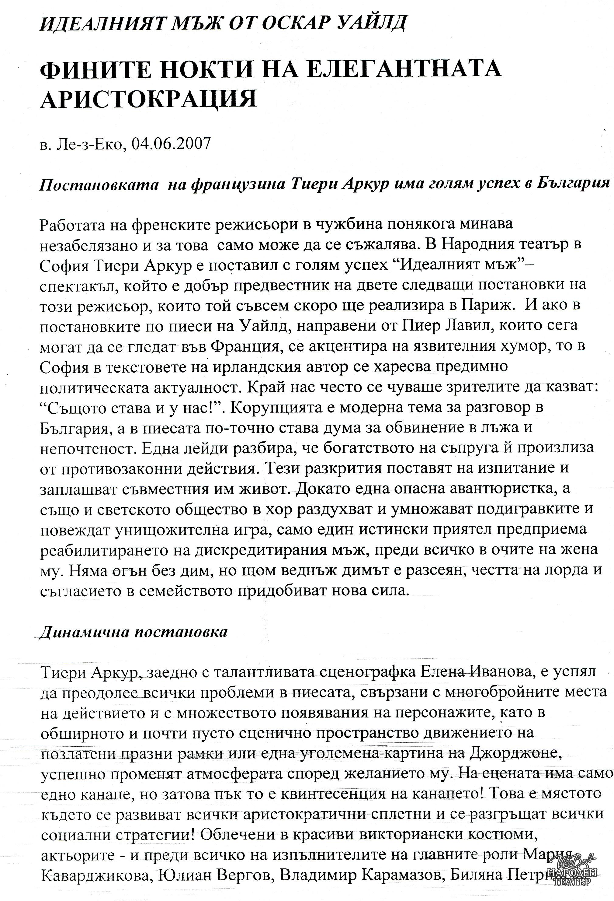 | Източник/ брой, дата, страница | в. Ле-з-Еко, 04.06.2007 |