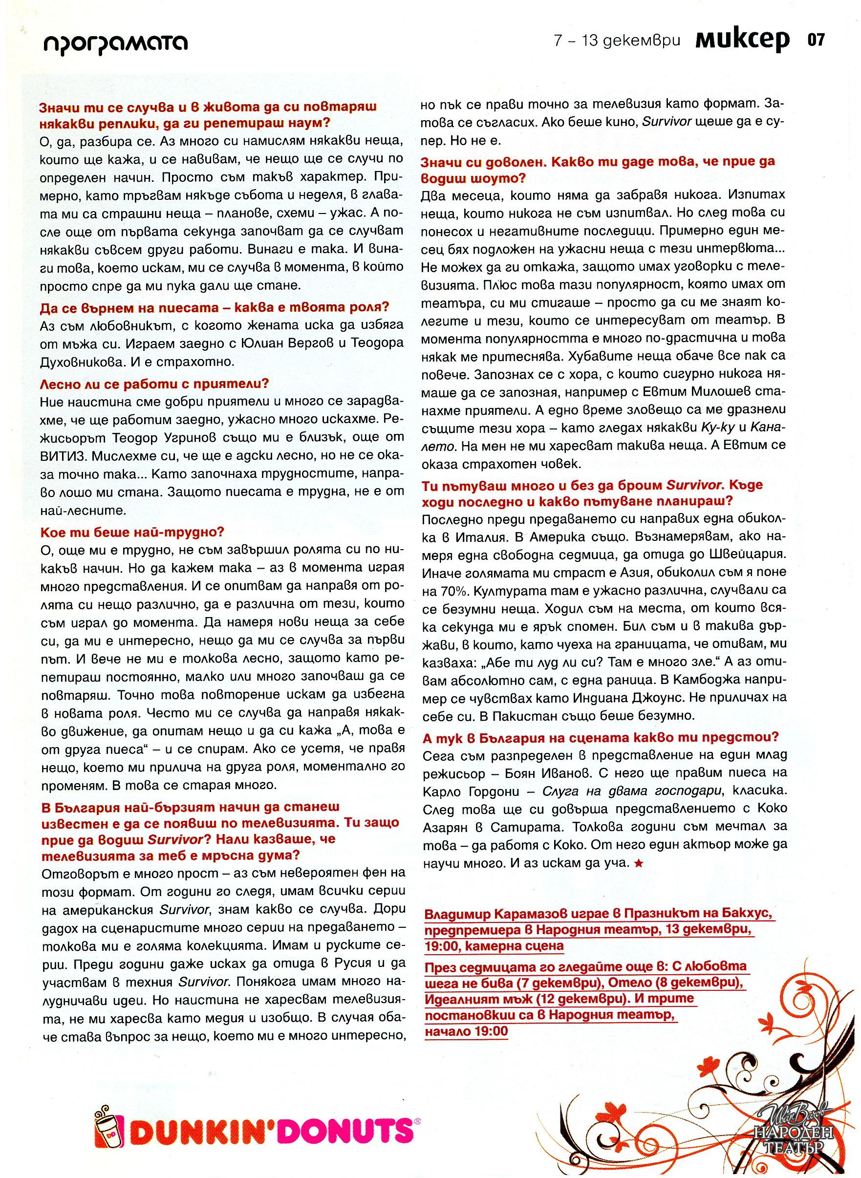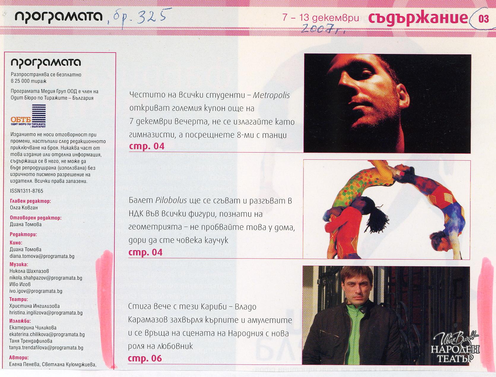 сп. Програмата, бр. 325, 7 - 13.12.2007, с. 6 |