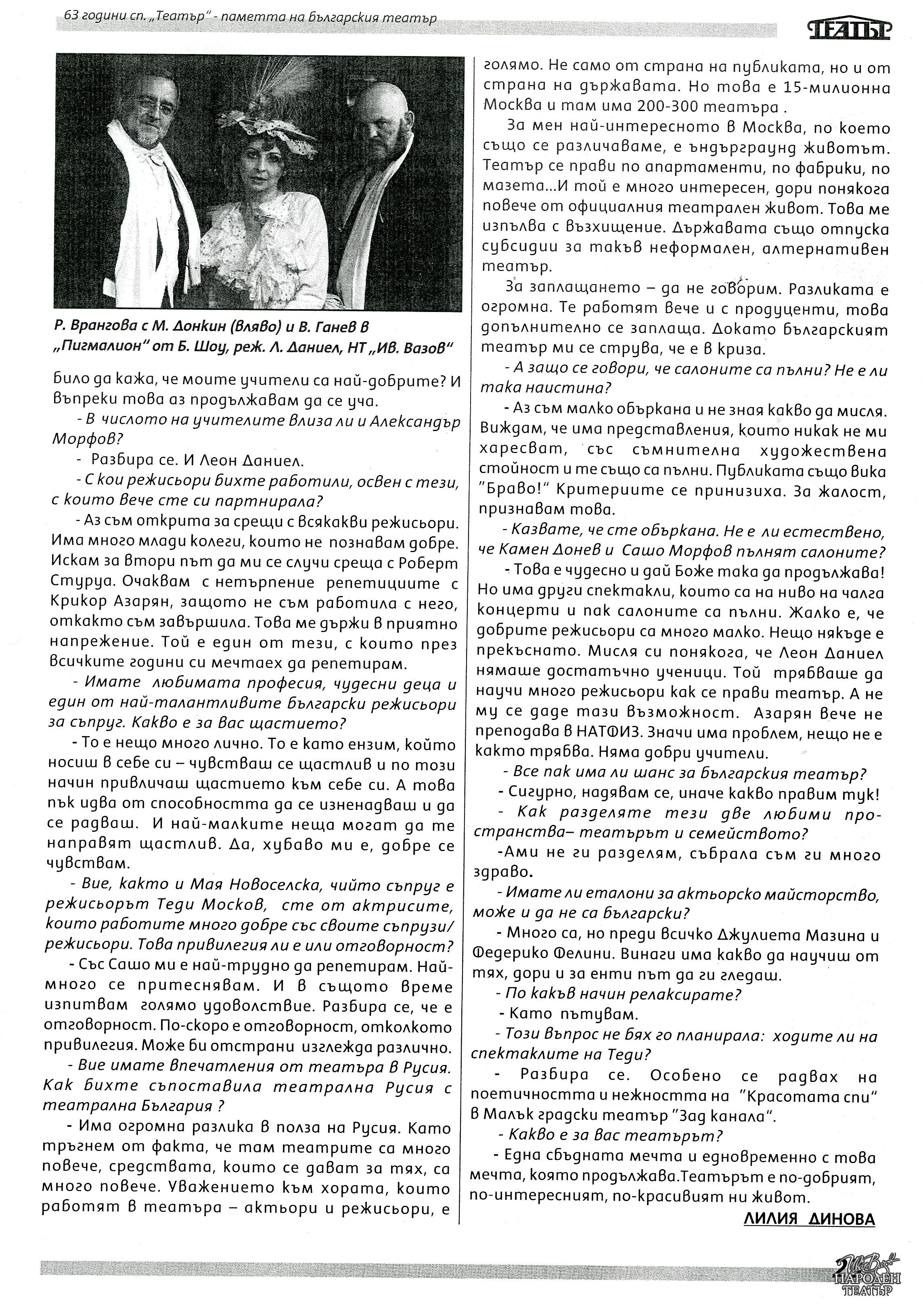 сп. Театър, Година LXIII, бр. 4-6, 2009, с. 22 - 23 |