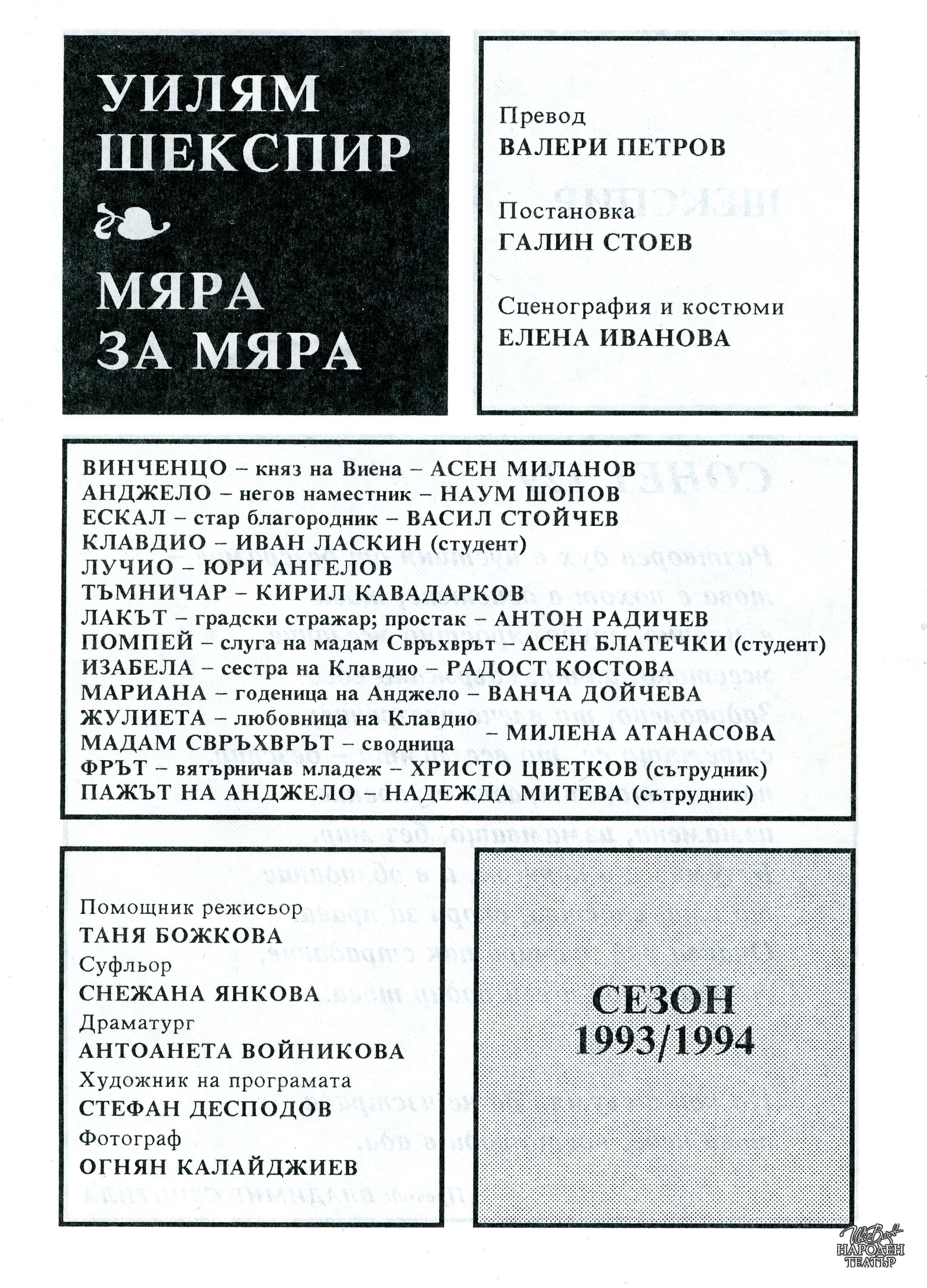 | Институция | Народен театър „Иван Вазов“, гр. София, България |
