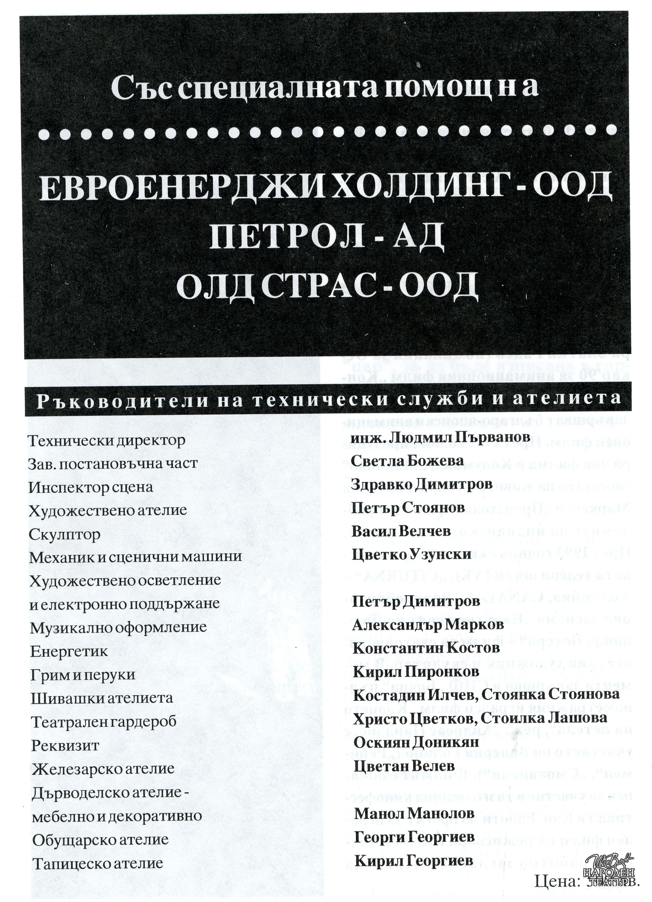 | Институция | Народен театър „Иван Вазов“, гр. София, България |