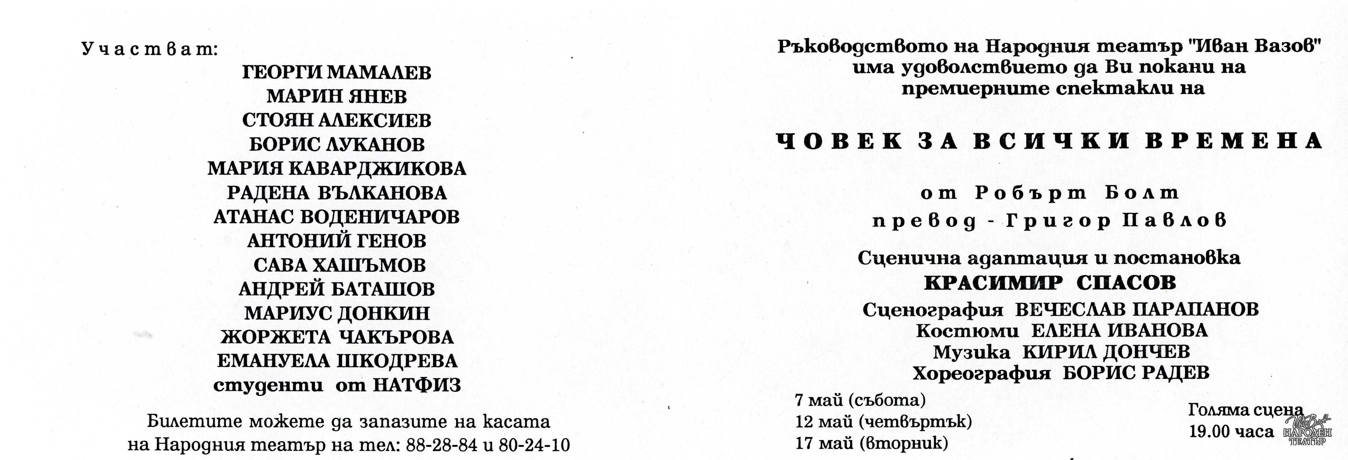 | Институция | Народен театър „Иван Вазов“, гр. София, България |