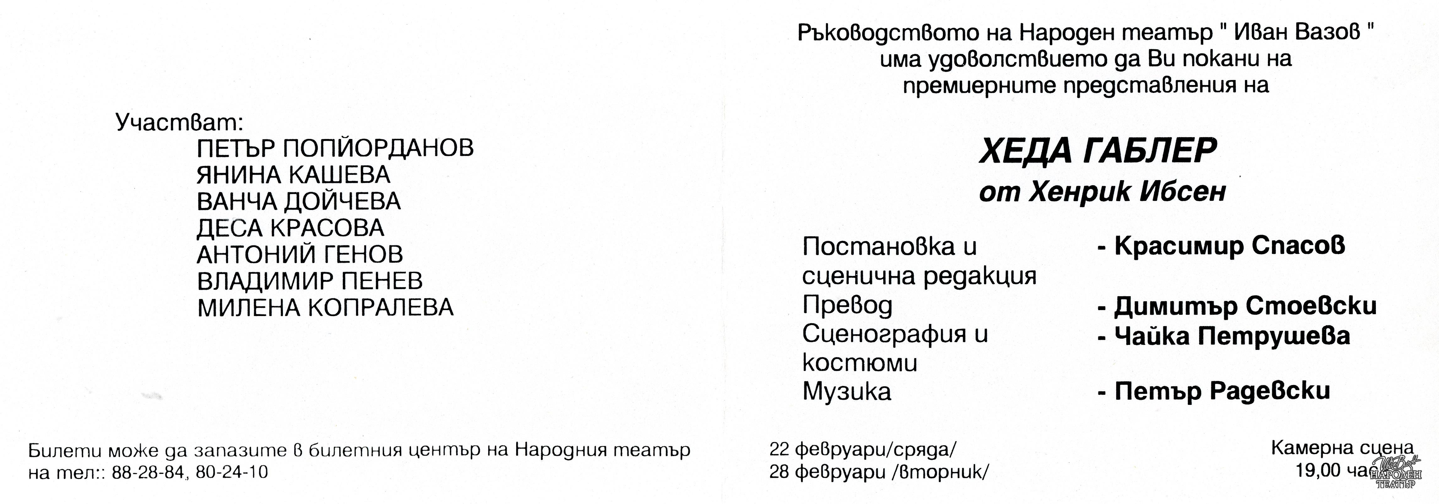 | Институция | Народен театър „Иван Вазов“, гр. София, България |