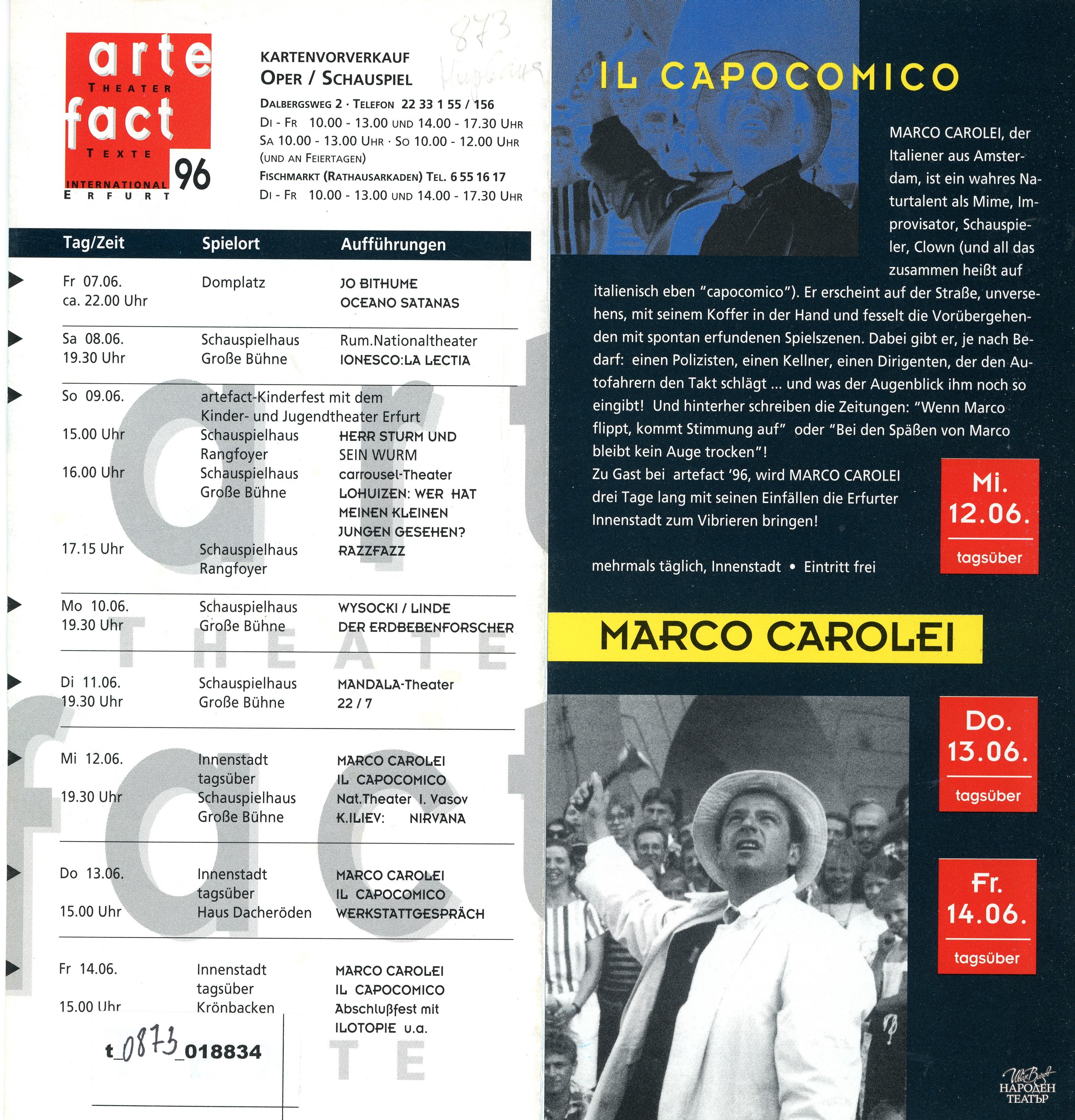 * Програма с участието на НИРВАНА на фестивала Артефакт в Ерфурт, Германия, 1996 г. |