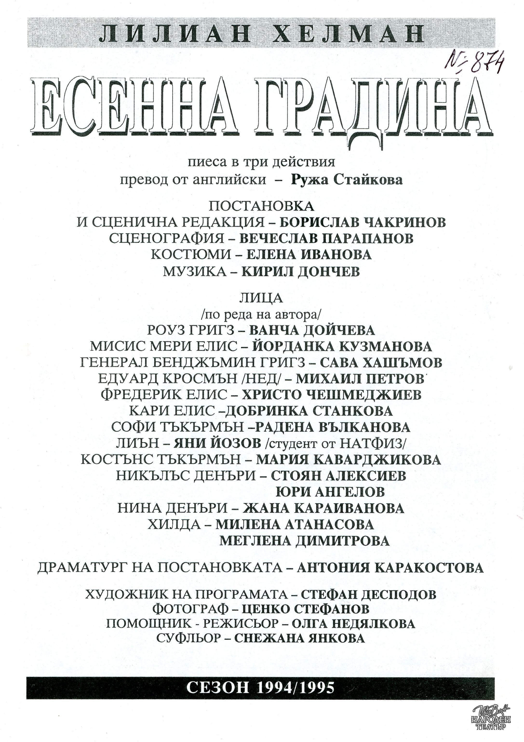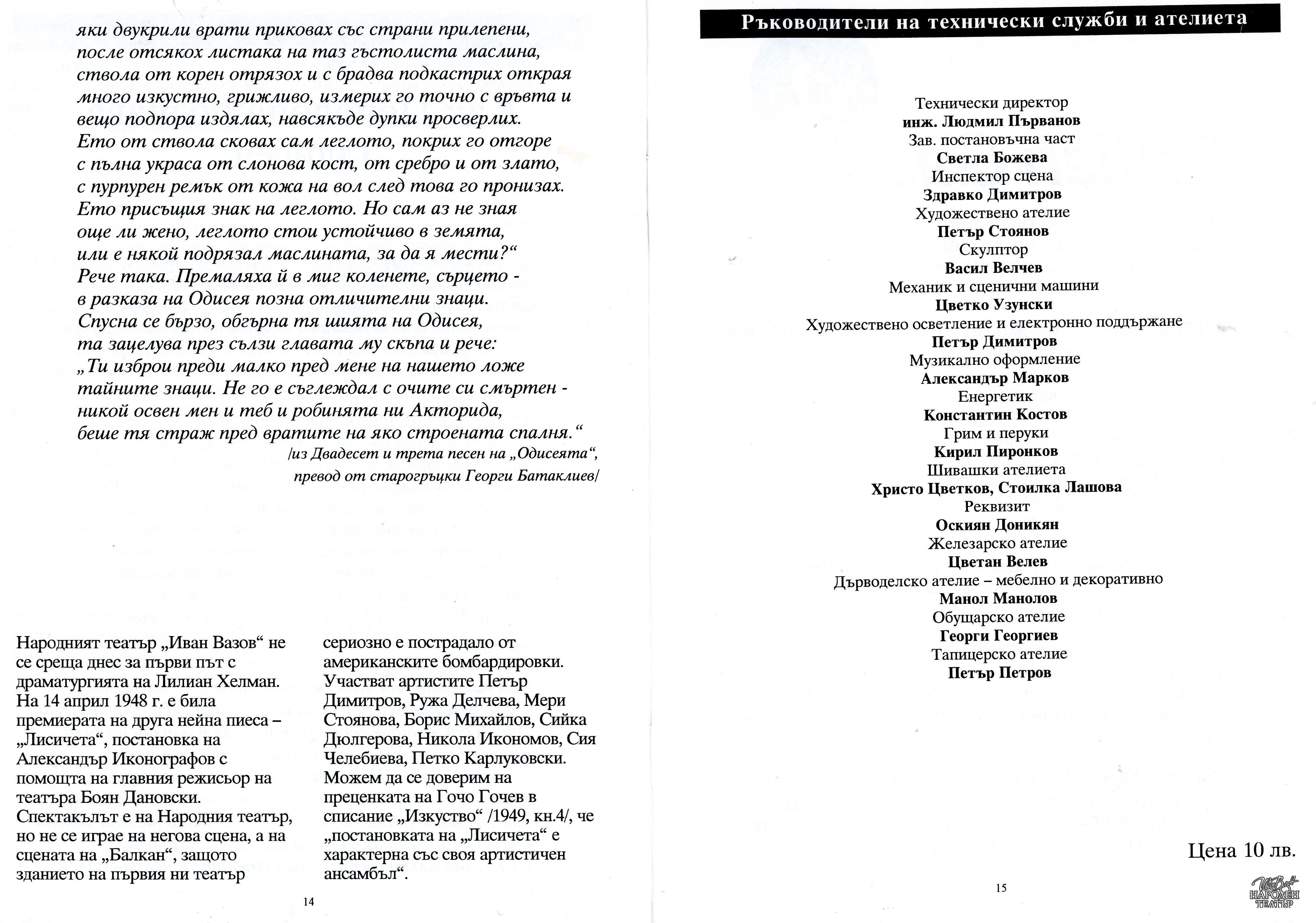 | Институция | Народен театър „Иван Вазов“, гр. София, България |