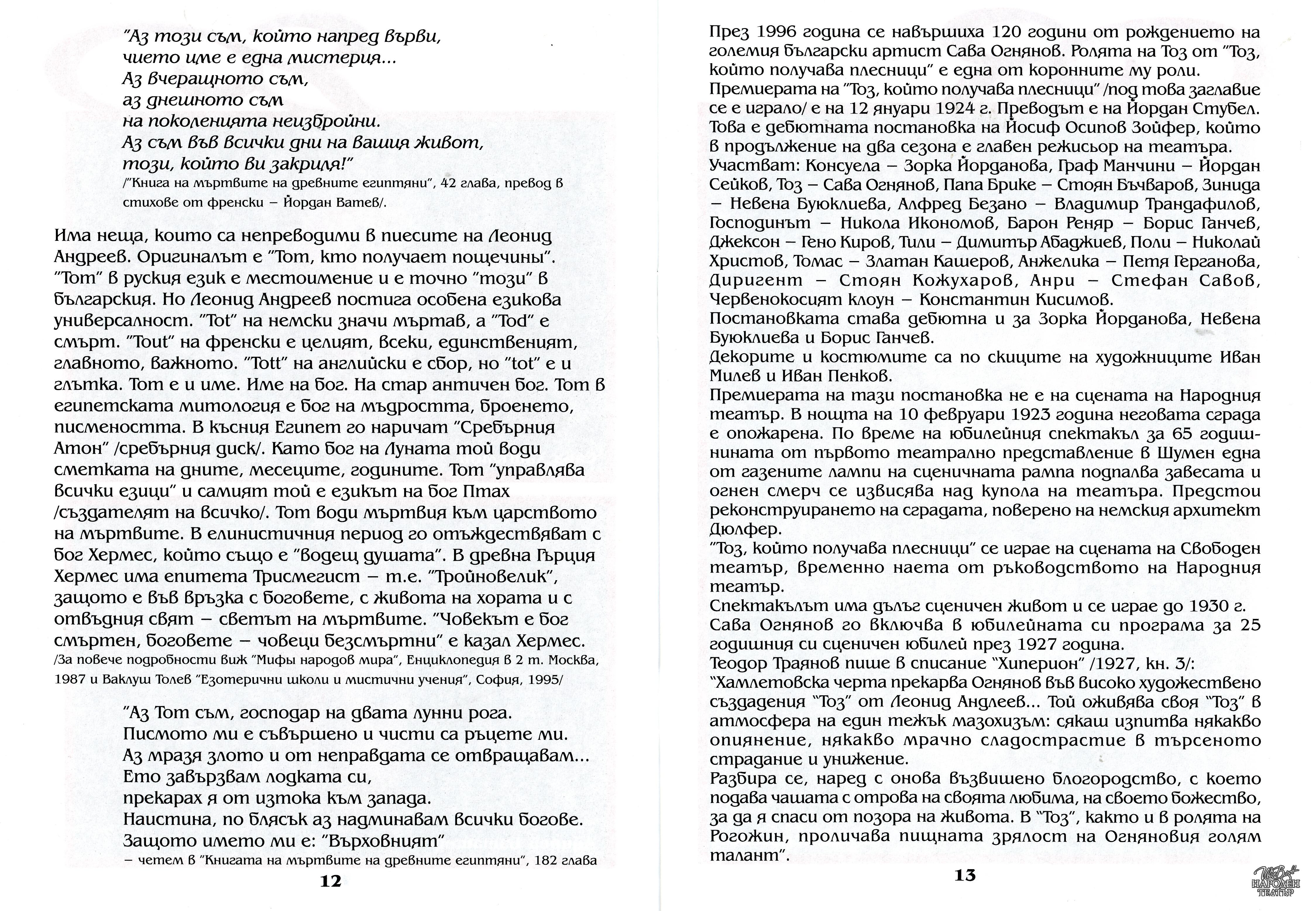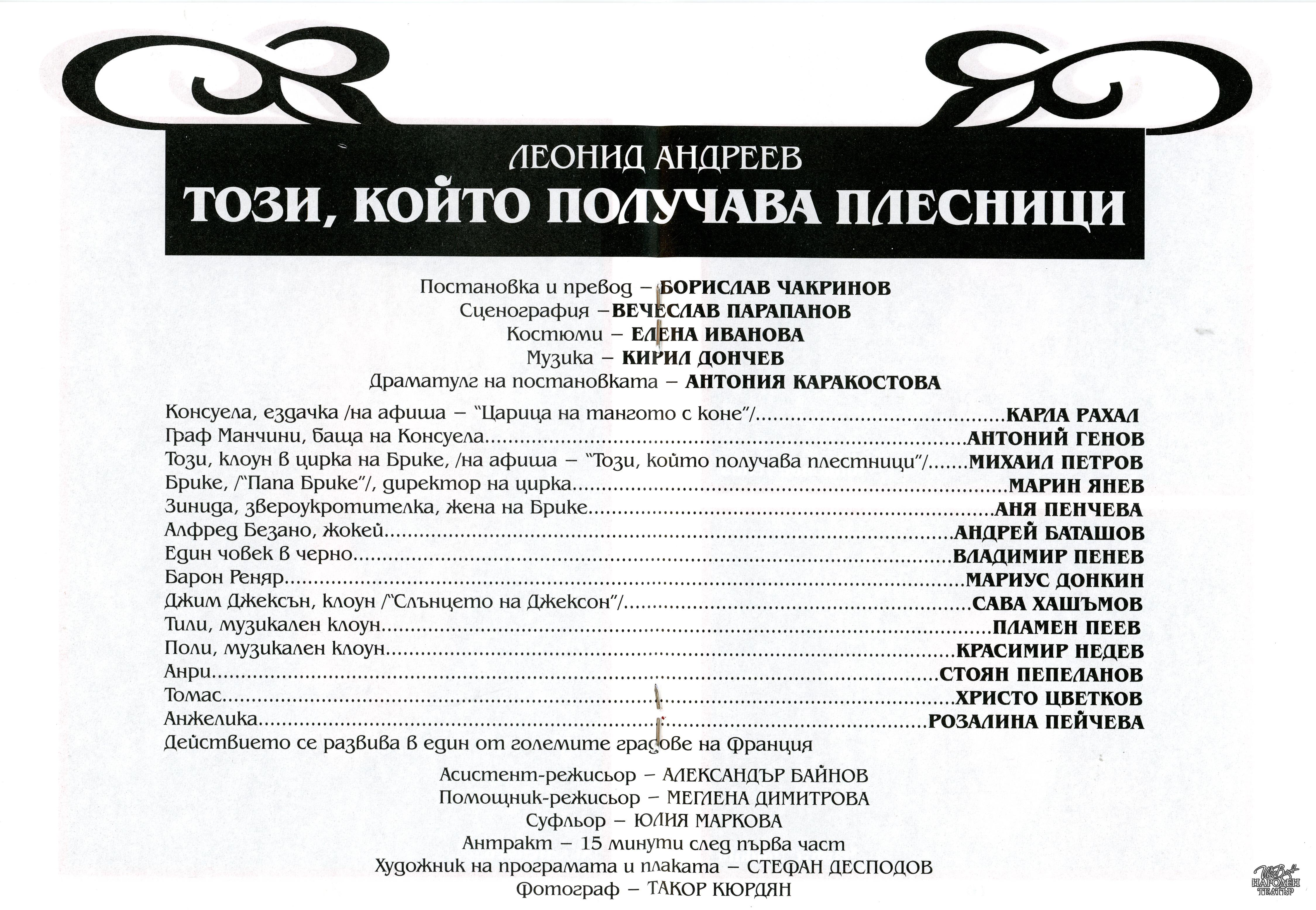 | Институция | Народен театър „Иван Вазов“, гр. София, България |