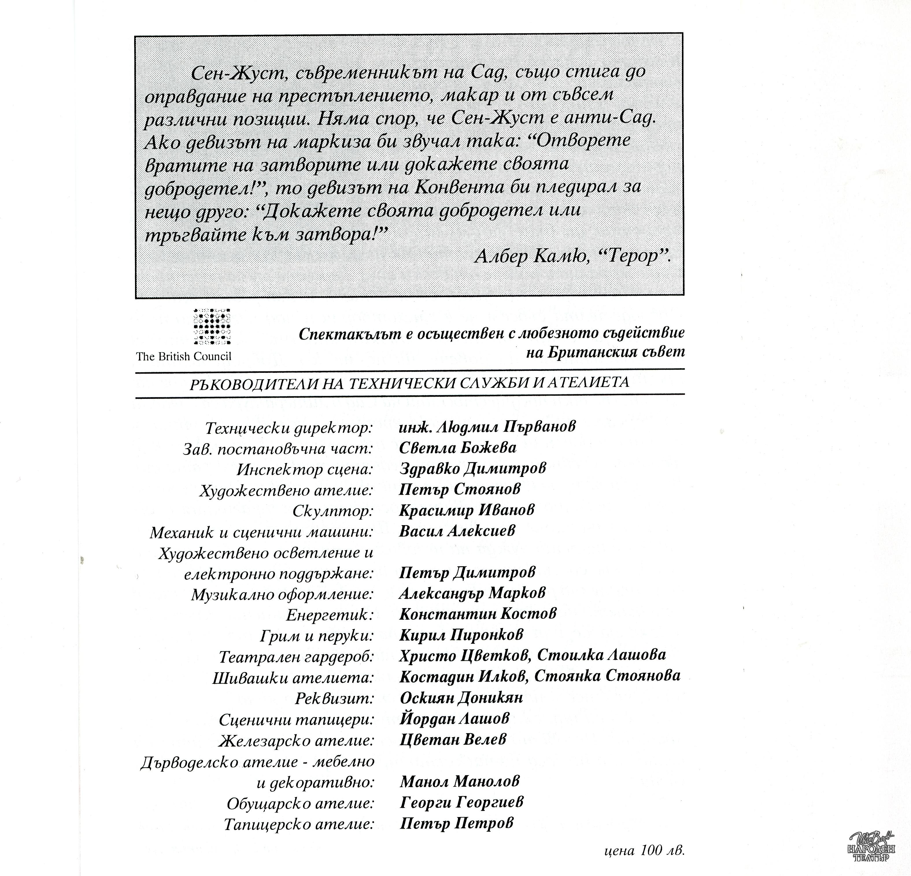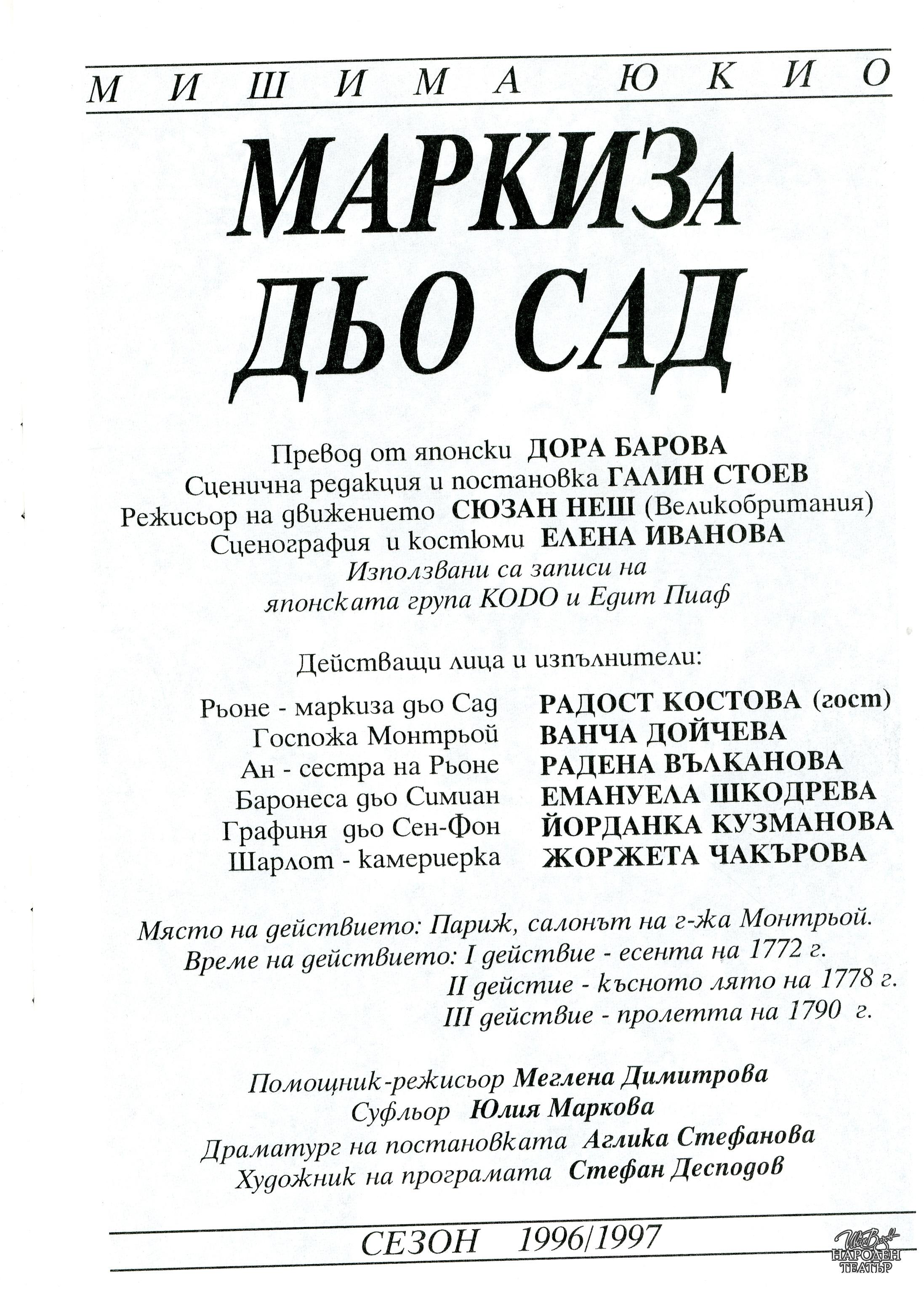 | Институция | Народен театър „Иван Вазов“, гр. София, България |