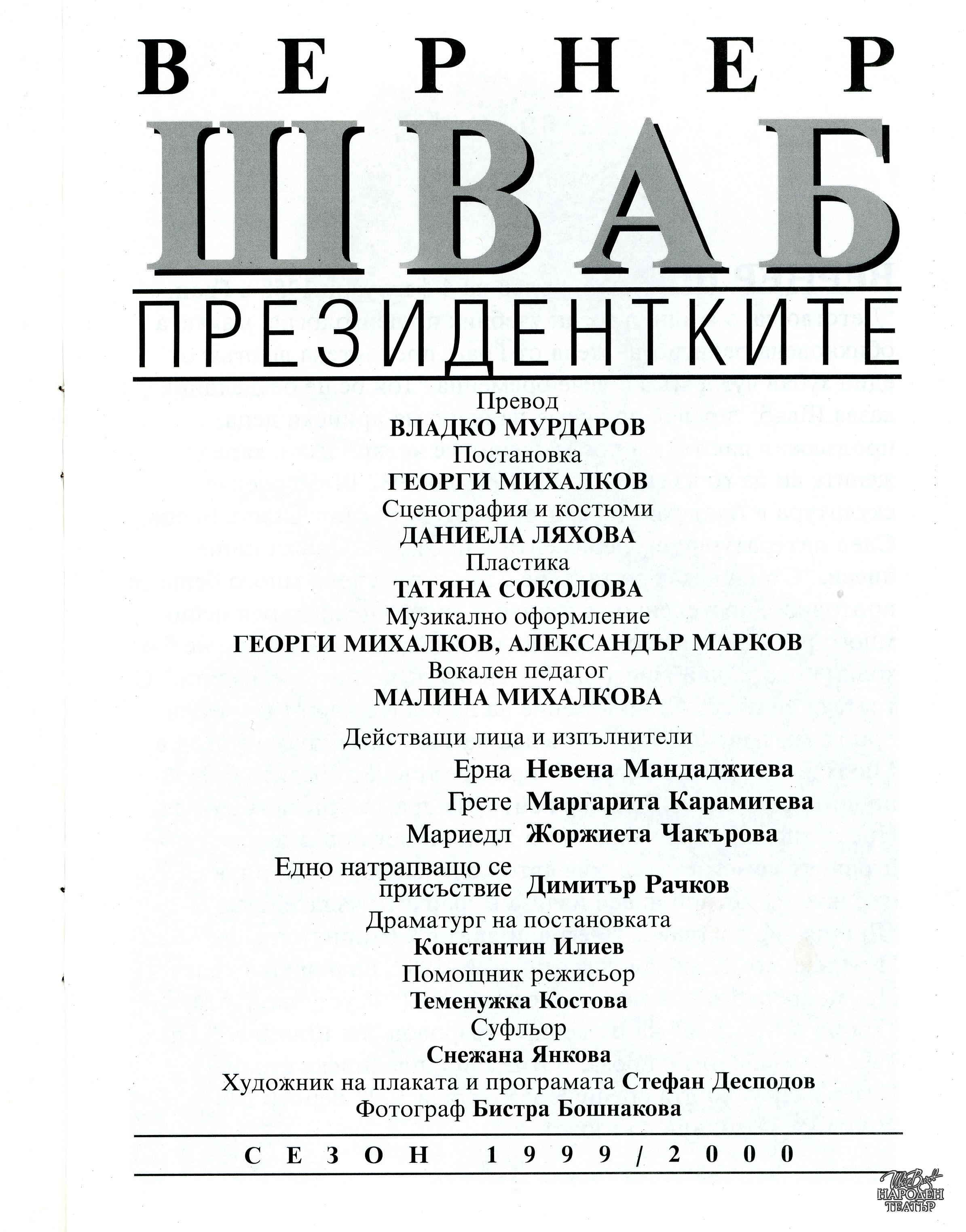 | Институция | Народен театър „Иван Вазов“, гр. София, България |