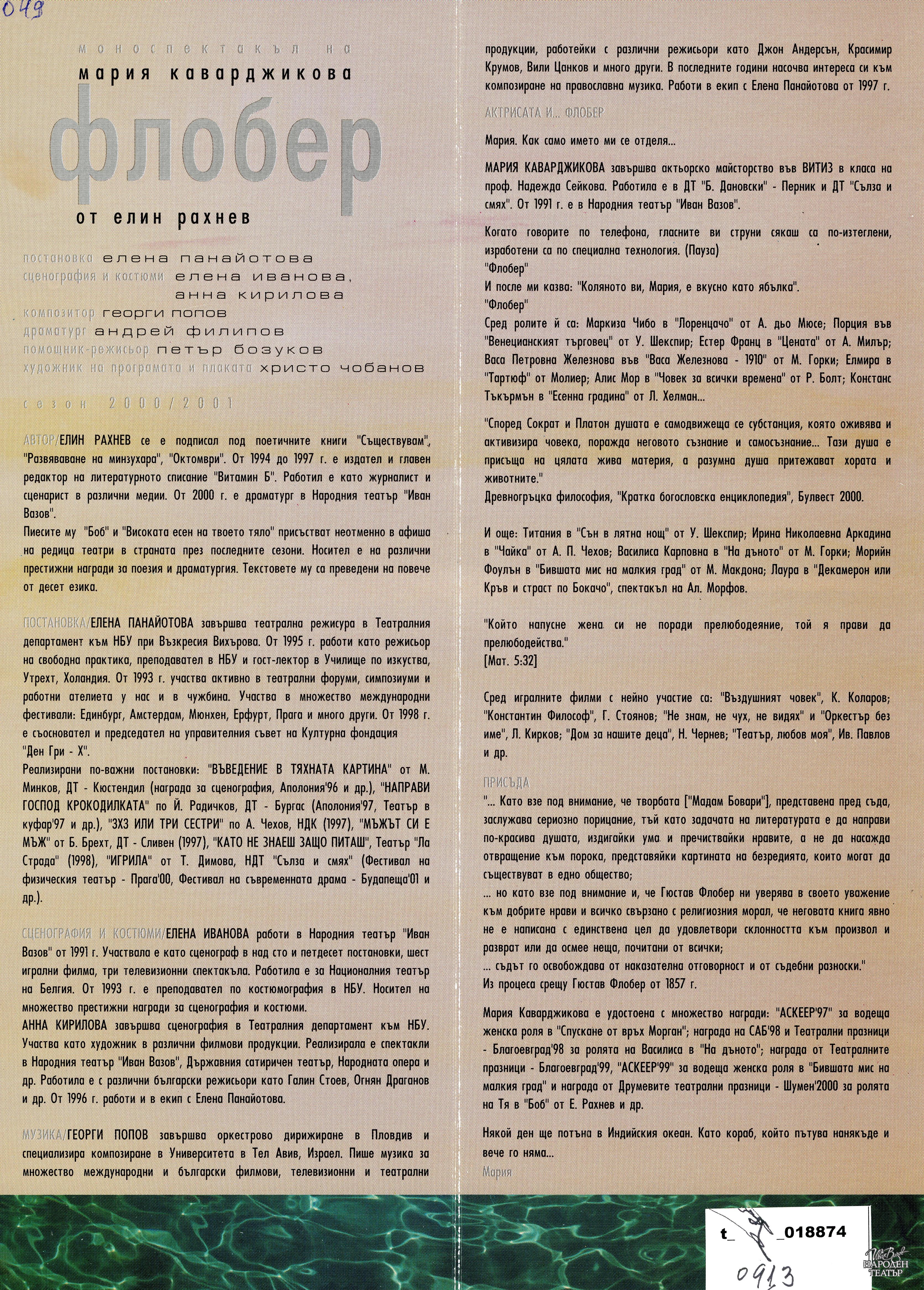 | Институция | Народен театър „Иван Вазов“, гр. София, България |